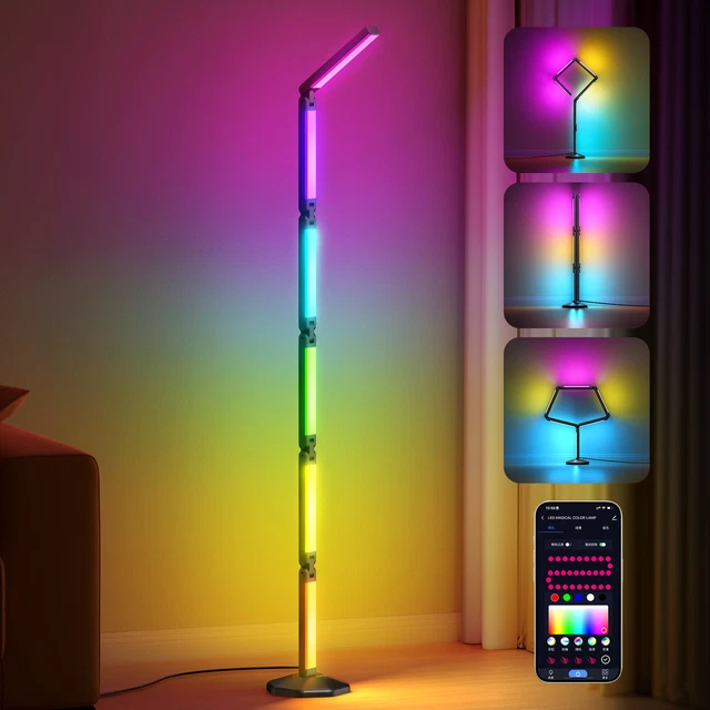 Wow, diese LED-Stehleuchte ist ja der absolute Hingucker! Stell dir vor, du hast über 16 Millionen Farben zur Auswahl - da findest du für jede Stimmung die passende Beleuchtung. Egal ob gemütlicher Filmabend oder wilde Party, diese Lampe macht alles mit! \\n\\nUnd die Steuerung? Mega einfach! Entweder per Fernbedienung oder direkt über die Smartphone-App. Da kannst du nicht nur die Farben wechseln, sondern auch die Helligkeit anpassen und Timer einstellen. Alles bequem von der Couch aus! \\n\\nDas absolute Highlight: Der Musik-Modus! Die Lampe tanzt im Takt deiner Lieblingssongs und verwandelt dein Zimmer in eine richtige Club-Atmosphäre. Perfekt für Gaming-Sessions oder wenn mal wieder Besuch kommt. \\n\\nDas schlanke, moderne Design passt super in jede Einrichtung - ob Wohnzimmer, Schlafzimmer oder Gaming-Raum. Sie steht stabil in der Ecke und nimmt nicht viel Platz weg. \\n\\nEinfach aufbauen, Strom anschließen und schon geht die Lichtshow los! Aus langweiligen vier Wänden wird im Handumdrehen eine coole Wohlfühloase. \\n\\nAlso, wenn du dein Zuhause aufpeppen willst, ist diese Lampe genau das Richtige! Sie macht nicht nur was her, sondern sorgt auch für die perfekte Stimmung bei jeder Gelegenheit.