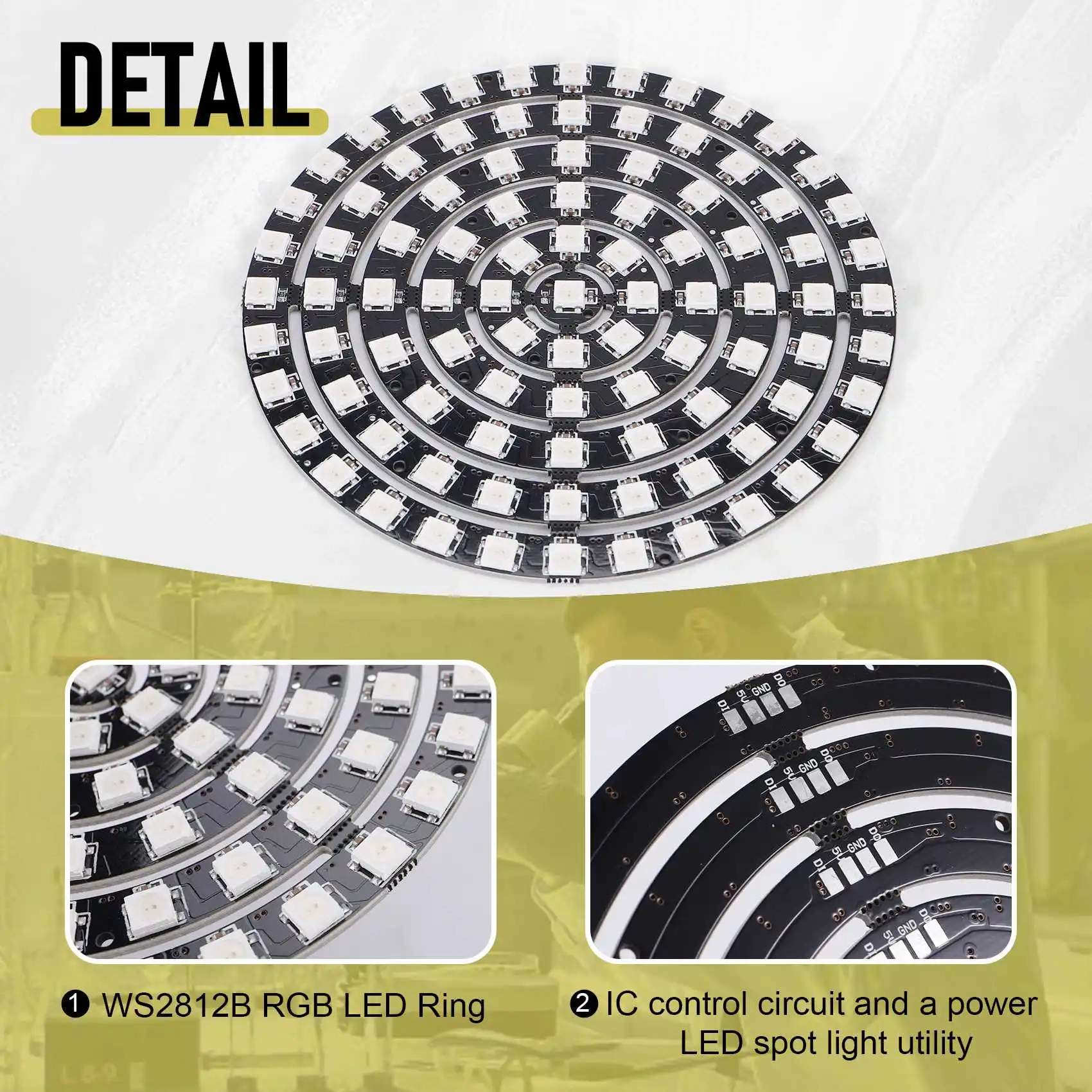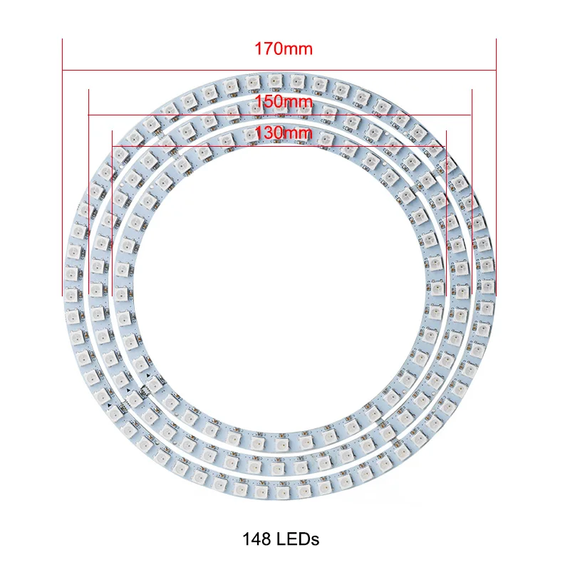 Wow, dieser LED-Ring ist ein echter Hingucker! Mit satten 93 adressierbaren LEDs und 110mm Durchmesser perfect für DIY-Projekte. Jede einzelne LED kann in 16,7 Millionen Farben leuchten - da sind deiner Kreativität keine Grenzen gesetzt. Ob für Lichtinstallationen, Roboter-Augen oder coole Raumbeleuchtung - damit machst du was her! Die WS2812/SK6812 LEDs sind super einfach anzusteuern, und die serielle Cascade-Schnittstelle macht die Verkabelung zum Kinderspiel. Aus schwarzem Kunststoff - sieht professionell aus. Perfekt für Maker, Künstler oder einfach alle, die coole Lichteffekte lieben. Einfach an 5V anschließen und programmieren - schon hast du deine persönliche Lightshow!