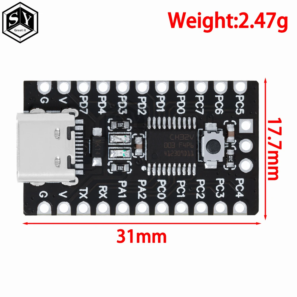 Hey Maker und Entwickler! Dieses Lckiioy RISC-V Set ist genau das Richtige für deine nächsten Embedded-Projekte. Stell dir vor: Du hast alles was du brauchst um direkt loszulegen mit der coolen CH32V003 Serie!\n\nWas im Set alles dabei ist:\n• CH32V003F4P6 Evaluierungsplatine\n• CH32V203C8T6 Evaluierungsplatine\n• Debugger zum Downloaden\n• Jeweils 5 Chips von beiden Typen\n• Alles sofort einsatzbereit\n\nTechnische Highlights:\n• QingKe 32-Bit RISC-V Prozessor\n• Bis zu 144 MHz Systemtakt\n• 2KB SRAM, 16KB Flash\n• Versorgung: 2,5V/3,3V/5V\n• USB, UART, I2C, SPI Schnittstellen\n\nAls Entwickler finde ich das Set super:\n• Perfekt zum Kennenlernen von RISC-V\n• Gute Dokumentation verfügbar\n• Preis-Leistung ist unschlagbar\n• Ideal für Prototypen\n\nEinsatzmöglichkeiten:\n• IoT Entwicklungen\n• Embedded Systems\n• Hobby Projekte\n• Professionelle Prototypen\n• Ausbildung und Lehre\n\nBesonders praktisch:\n• 1-Draht Debug Schnittstelle\n• Mehrere Energiesparmodi\n• DMA Controller für effiziente Datenübertragung\n• TouchKey Unterstützung\n\nEgal ob du RISC-V Neuling bist oder erfahrener Entwickler - dieses Set gibt dir alle Möglichkeiten! Und mit den extra Chips kannst du auch mal was kaputt machen ohne gleich nachkaufen zu müssen.\n\nFür alle die die Zukunft der Embedded-Entwicklung mitgestalten wollen. Einfach auspacken und programmieren!