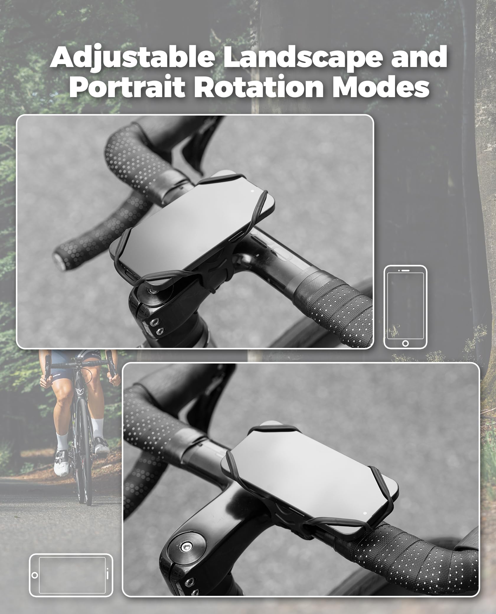Perfekt für alle, die ihr Smartphone beim Radfahren immer im Blick haben wollen! Diese ROCKBROS Handyhalterung aus weichem Silikon passt für Smartphones von 4-7 Zoll. Die vier Schnallenecken greifen dein Handy bombenfest - selbst auf holprigen Trails bleibt es sicher sitzen. Das elastische Silikon absorbiert Vibrationen und schützt vor Kratzern. Touch ID, Face ID, Ladeanschlüsse und Tasten bleiben frei zugänglich. Ohne Werkzeug montierbar - der verstellbare Riemen mit 16 Lochpositionen passt an jeden Lenker. Nur 101g leicht, aber extrem stabil. Für MTB, E-Bike, Motorrad, Roller - einfach universell einsetzbar!