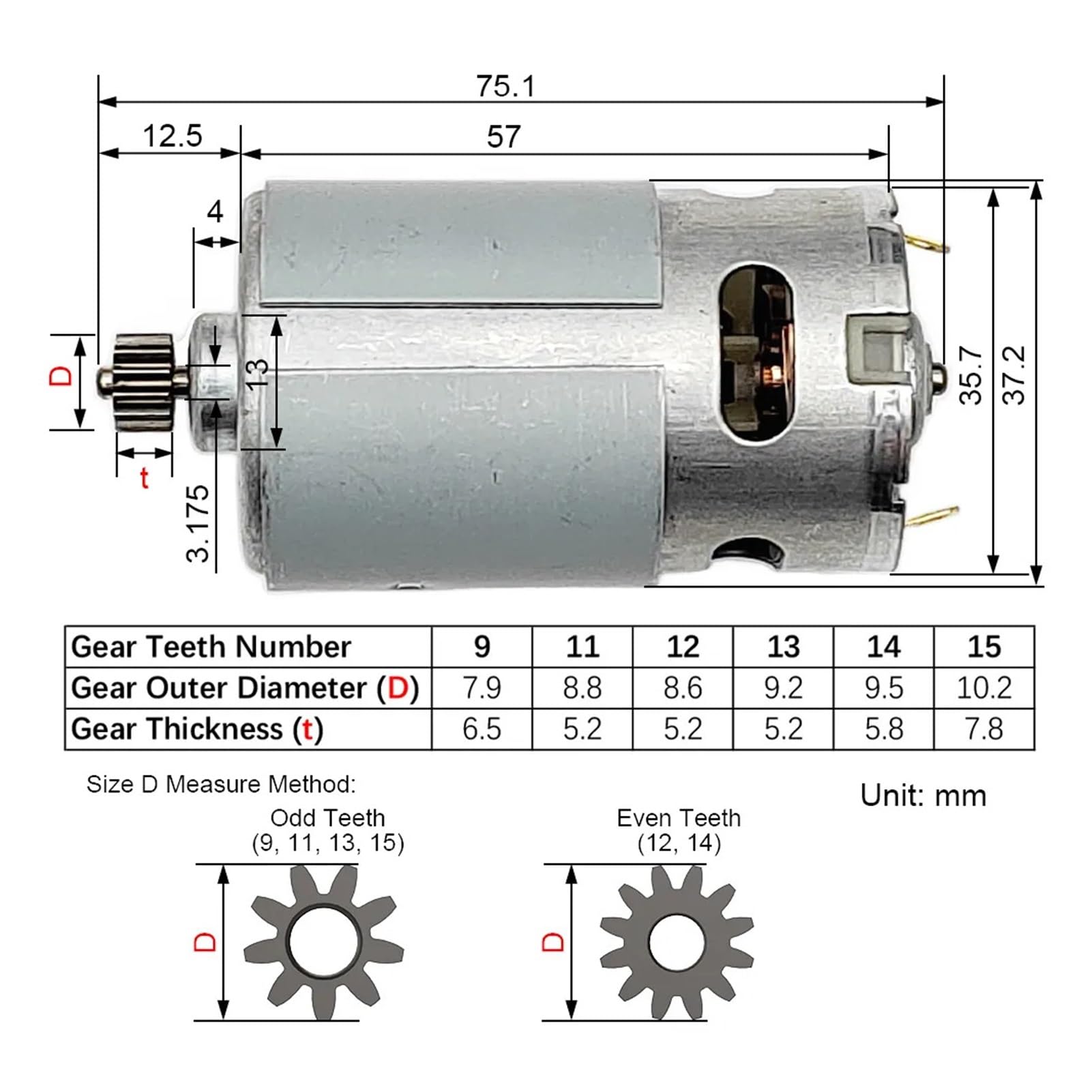 Wenn dein Bosch-Akkuwerkzeug schlapp macht, ist dieser RS550 Motor die Lösung! Mit 12 Zähnen und wahlweise 7,2V, 12V, 14,4V oder 18V passt er perfekt als Ersatz. Aus Metall mit starken Magnetkohlebürsten - robust und langlebig. Maße: 57mm Länge, 37mm Durchmesser, 3mm Wellendurchmesser. Einfach auswechseln und dein Werkzeug läuft wieder wie neu. Perfekte Passform für Bosch-Ladebohrer und andere Akku-Geräte. Deutsche Qualität zum fairen Preis - warum teuer neu kaufen, wenn die Reparatur so einfach ist? Hol dir die Power zurück für deine Bosch-Werkzeuge!