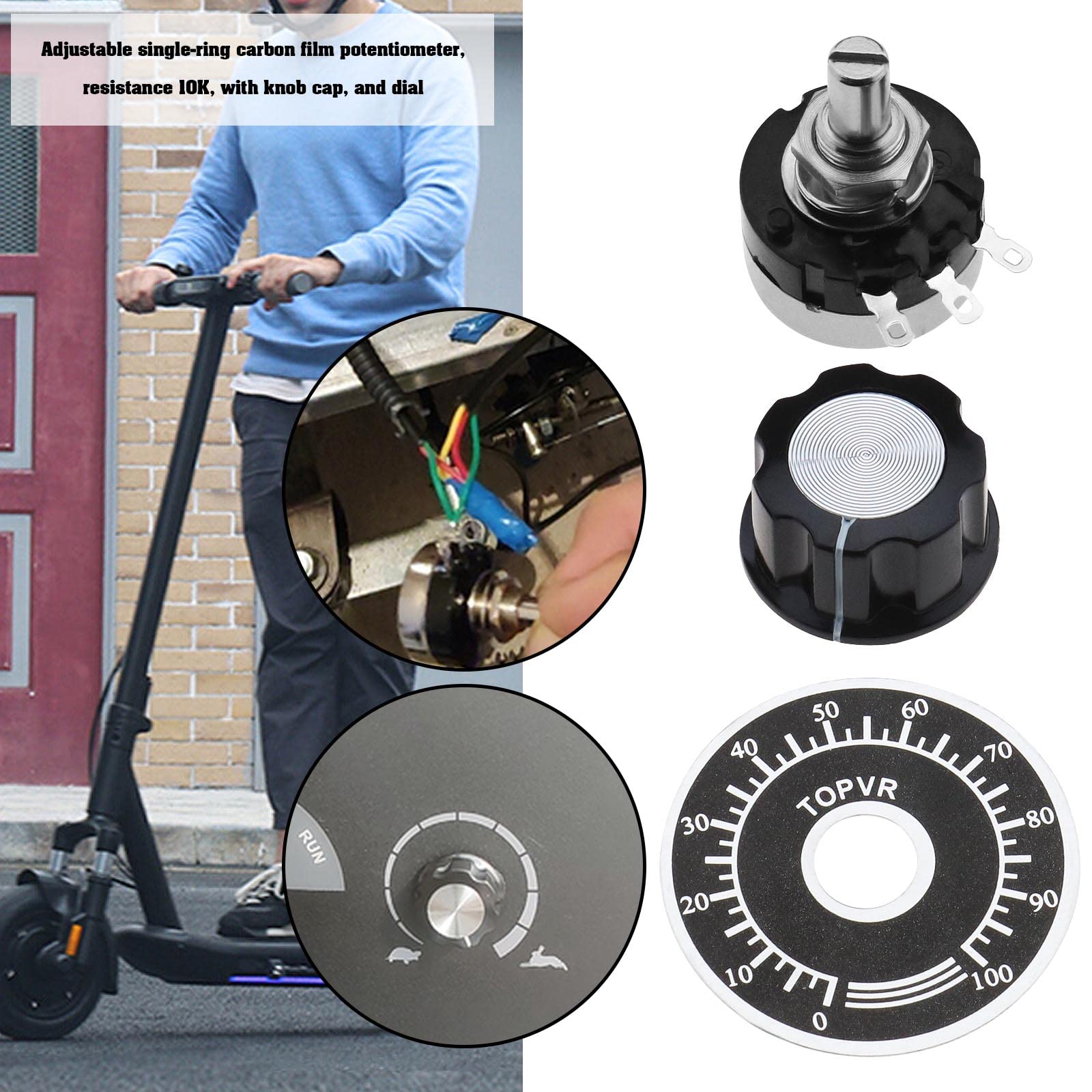 • 4x Kohlefilm Potentiometer RV24YN20S 10K Ohm - Mit Drehknöpfen Für Motordrehzahlregelung
