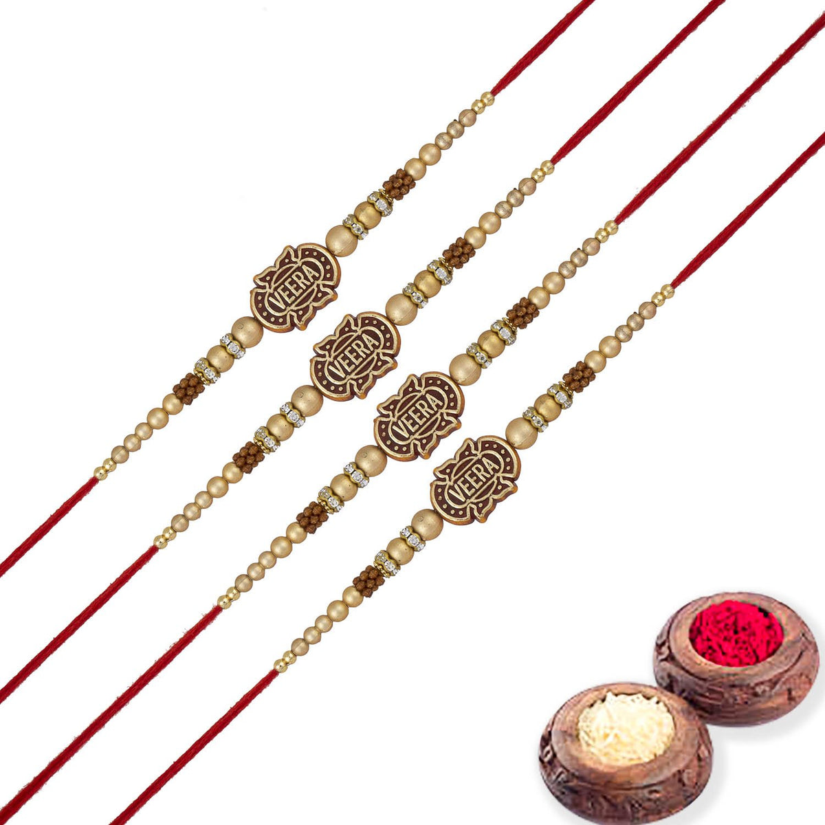 Zeige deine Liebe und Verbundenheit mit diesem wunderschönen Rakhi-Armband von Aditri Creation! Traditionell handgefertigt in Indien, symbolisiert es die unzerbrechliche Bindung zwischen Bruder und Schwester. Mit elegantem Om-Design, verziert mit bunten Steinen, Perlen, Moti-, Minakari- und Kundan-Anhängern. Aus weichem Baumwollfaden gefertigt, liegt es angenehm am Handgelenk. Perfekt für das Raksha Bandhan Festival, wenn Schwestern ihren Brüdern dieses besondere Armband als Zeichen des Schutzes und der Liebe binden. Ein wunderbares Geschenk für Bruder, Bhaiya, Bhabhi oder Schwägerin. Jedes Stück ein Unikat, mit Liebe und Segen von indischen Kunsthandwerkern hergestellt. Feiere die schöne Tradition und mache dieses Fest zu einem unvergesslichen Erlebnis voller Freude und Zuneigung. Made with love in India!