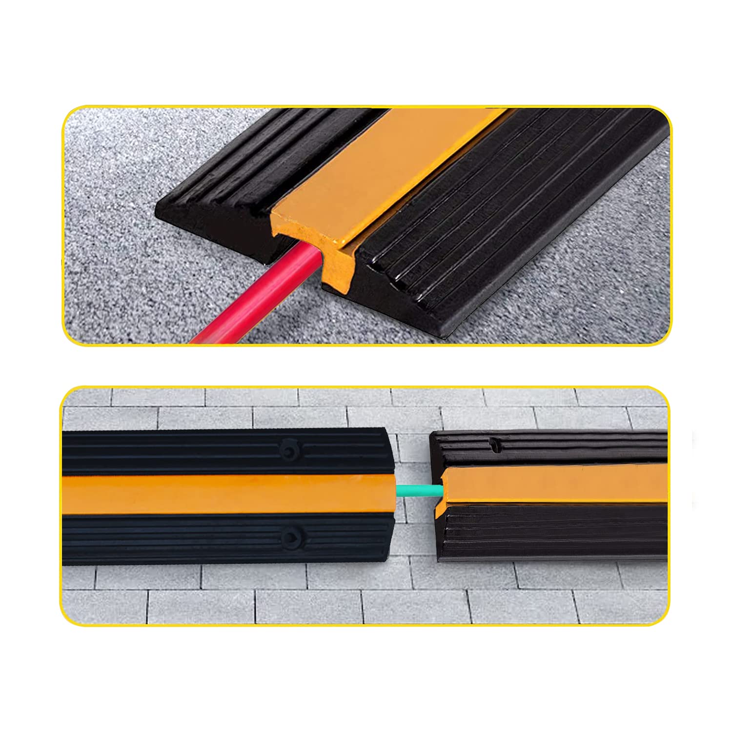 Schluss mit Stolperfallen und kaputten Kabeln! Diese robusten Gummi-Rampen schützen deine Kabel sicher vor Fußgängern und Fahrzeugen. \\n\\nJede Achse hält satte 22.406 Pfund (10.000 kg) aus! Aus handelsüblichem thermoplastischem Kautschuk, extrem langlebig und stabil. \\n\\nMit 2 Kanälen (3x3,5cm) hast du genug Platz für verschiedene Kabel. 98cm lang, 24cm breit, 5,08cm hoch - perfekt für Verlängerungskabel, Stromleitungen und Schläuche. \\n\\nMehrere Rampen einfach verbinden für längere Strecken. Der hellgelbe Deckel sorgt für gute Sichtbarkeit bei Tag und Nacht. \\n\\nIdeal für Baustellen, Veranstaltungen, Parkplätze - überall wo Kabel geschützt werden müssen. 3 Stück im Set!