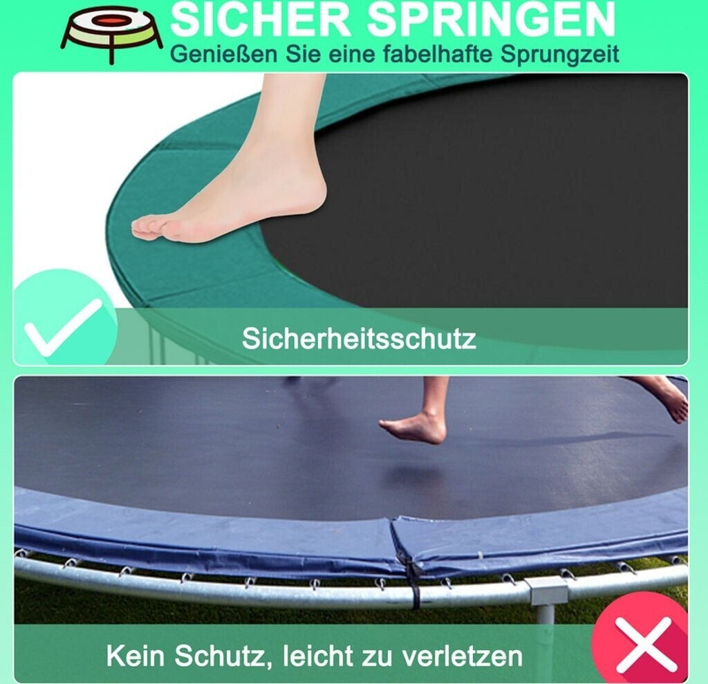 Achtung Trampolin-Besitzer! Diese Randabdeckung ist super wichtig für die Sicherheit eurer Kinder. Passt perfekt auf 140cm Trampoline und deckt die gefährlichen Federn komplett ab. Aus robustem Oxford-Stoff mit wasserabweisender PVC-Beschichtung - hält auch bei Regen stand. Die praktischen Installationsgurte sorgen für sicheren Halt, damit nichts verrutscht. Einfach zu reinigen und sowohl für drinnen als auch draußen geeignet. In blau-gelbem Design sieht sie nicht nur gut aus, sondern warnt auch gut sichtbar. Verhindert böse Stürze auf die Federn und gibt Eltern ein sicheres Gefühl. Einfach über die Federn ziehen, Gurte befestigen und schon kann's losgehen! Wenn eure alte Abdeckung kaputt ist oder ihr mehr Sicherheit wollt - hier ist die Lösung. Macht das Springen gleich viel sicherer und sorgt für ungetrübten Spielspaß!