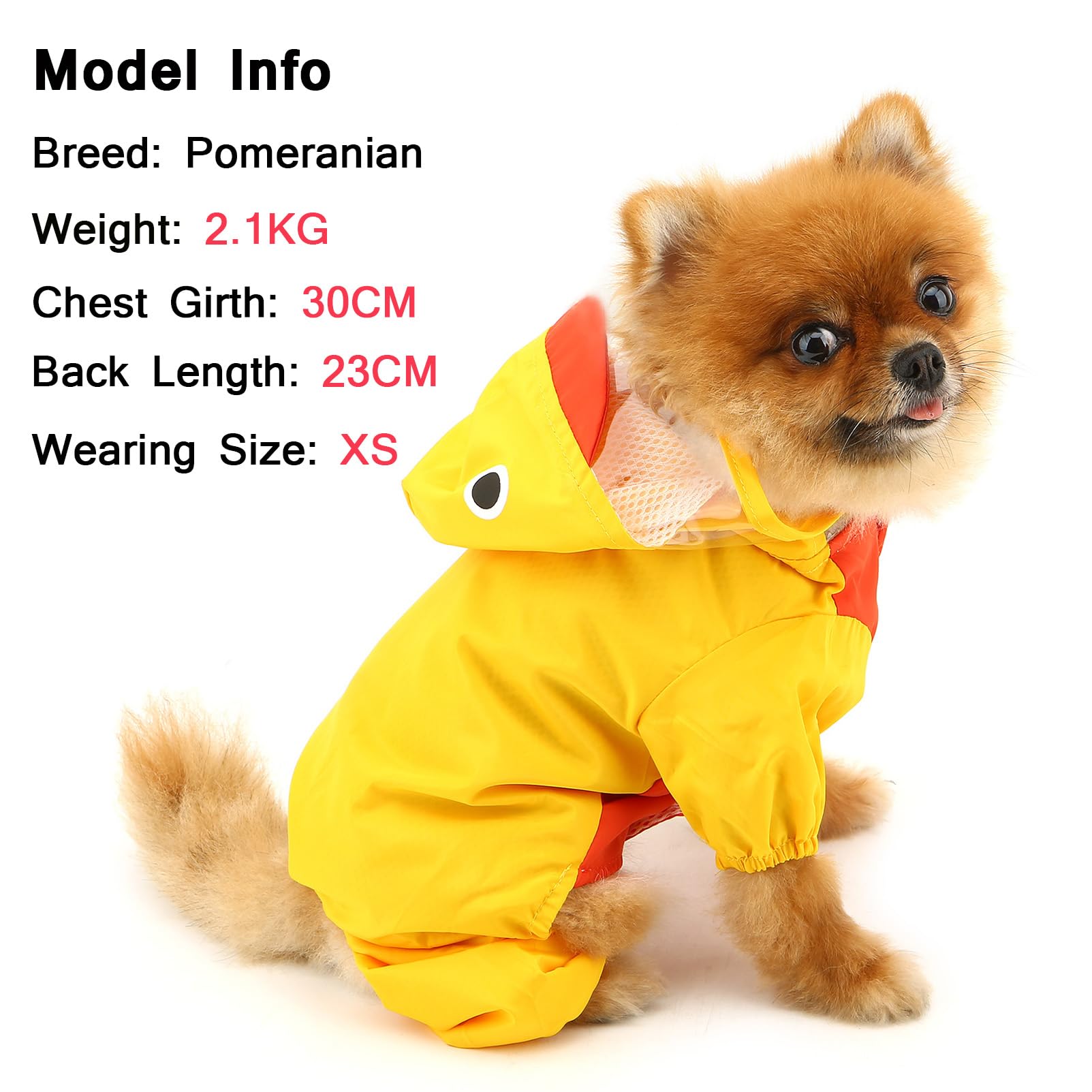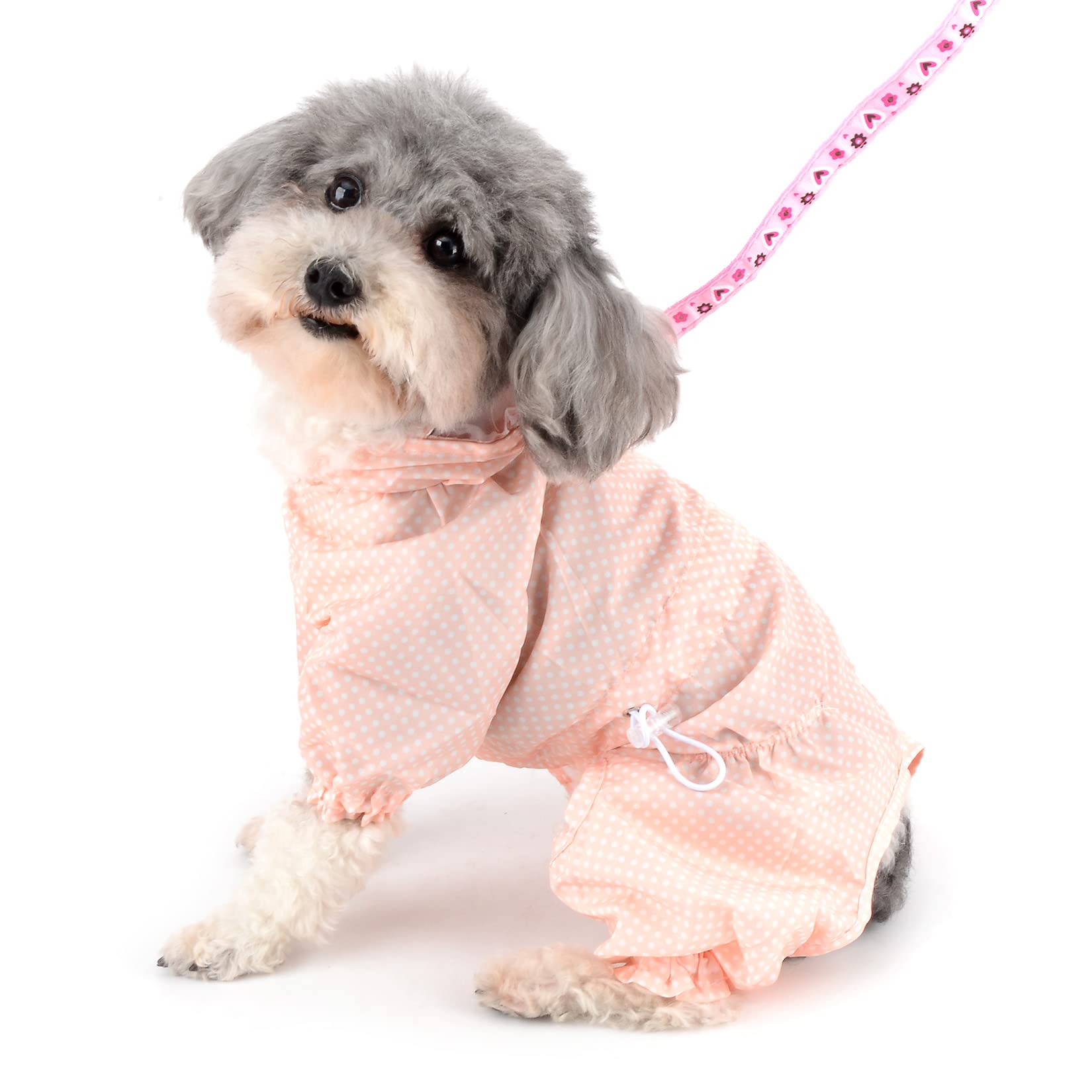 Perfekter Regenschutz für deinen kleinen Liebling! Dieser super süße Regenmantel ist speziell für Welpen und kleine Hunde bis 9 kg gemacht. Das vierbeinige Design schützt nicht nur den Rücken, sondern auch die Beinchen - so kommt dein Hund auch bei strömendem Regen trocken nach Hause.\\n\\nDas Besondere: Der Mantel hat praktische Klettverschlüsse an den Füßen und einen versteckten Bauchverschluss, der das Anziehen total einfach macht. Die transparente Kapuze schützt den Kopf ohne die Sicht zu versperren.\\n\\nGrößenauswahl:\\n- S: Brust 35,1 cm / Rücken 26,9 cm (1,5-2,5 kg)\\n- M: Brust 39,9 cm / Rücken 32 cm (2,5-3,5 kg)\\n- L: Brust 45 cm / Rücken 37 cm (3,5-4,5 kg)\\n- XL: Brust 50 cm / Rücken 41,9 cm (4,5-5,5 kg)\\n- XXL: Brust 59,9 cm / Rücken 45 cm (6-9 kg)\\n\\nTipp: Bitte genau ausmessen - jeder Hund ist anders! Passt super für Chihuahua, Malteser, Yorkshire, Dackel, Mops und andere kleine Rassen. Der Stoff ist übrigens super leicht, atmungsaktiv und hält wirklich trocken!