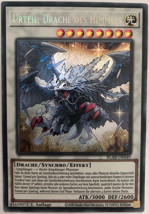 Für echte YuGiOh-Sammler und -Spieler! Diese begehrte 'Urteil, Drache des Himmels'-Karte in Secret Rare Qualität aus der 1. Edition von 'Battles of Legend: Armageddon'. Komplett auf Deutsch und im Near Mint-Zustand - jede Karte wird vor dem Versand geprüft! Im Set inklusive einer exklusiven LMS Trading Fieldcenter-Karte. Perfekt zum Spielen, Sammeln, Tauschen oder Verschenken. Der knicksichere Versand im Toploader garantiert, dass deine Karte sicher ankommt. LMS Trading ist eine offiziell geschützte Marke - hier bekommst du Originalqualität! Über 30.000 verschiedene YuGiOh-Karten verfügbar. Hol dir dieses Juwel für deine Sammlung oder decke damit im Duell auf! Ein Must-have für jeden ernsthaften YuGiOh-Fan.
