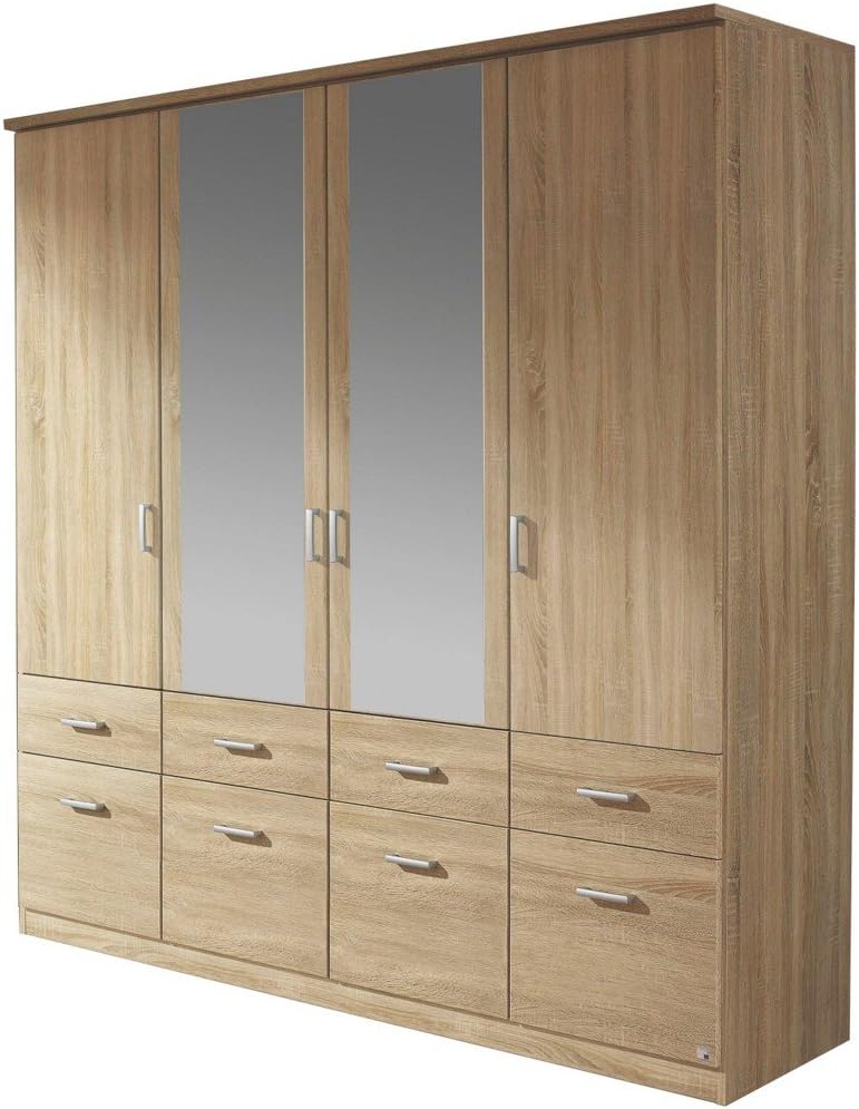 • Rauch Drehtürenschrank Rasant - 3-türiger Kleiderschrank Mit Spiegel & 2 Schubladen, Eiche Sonoma