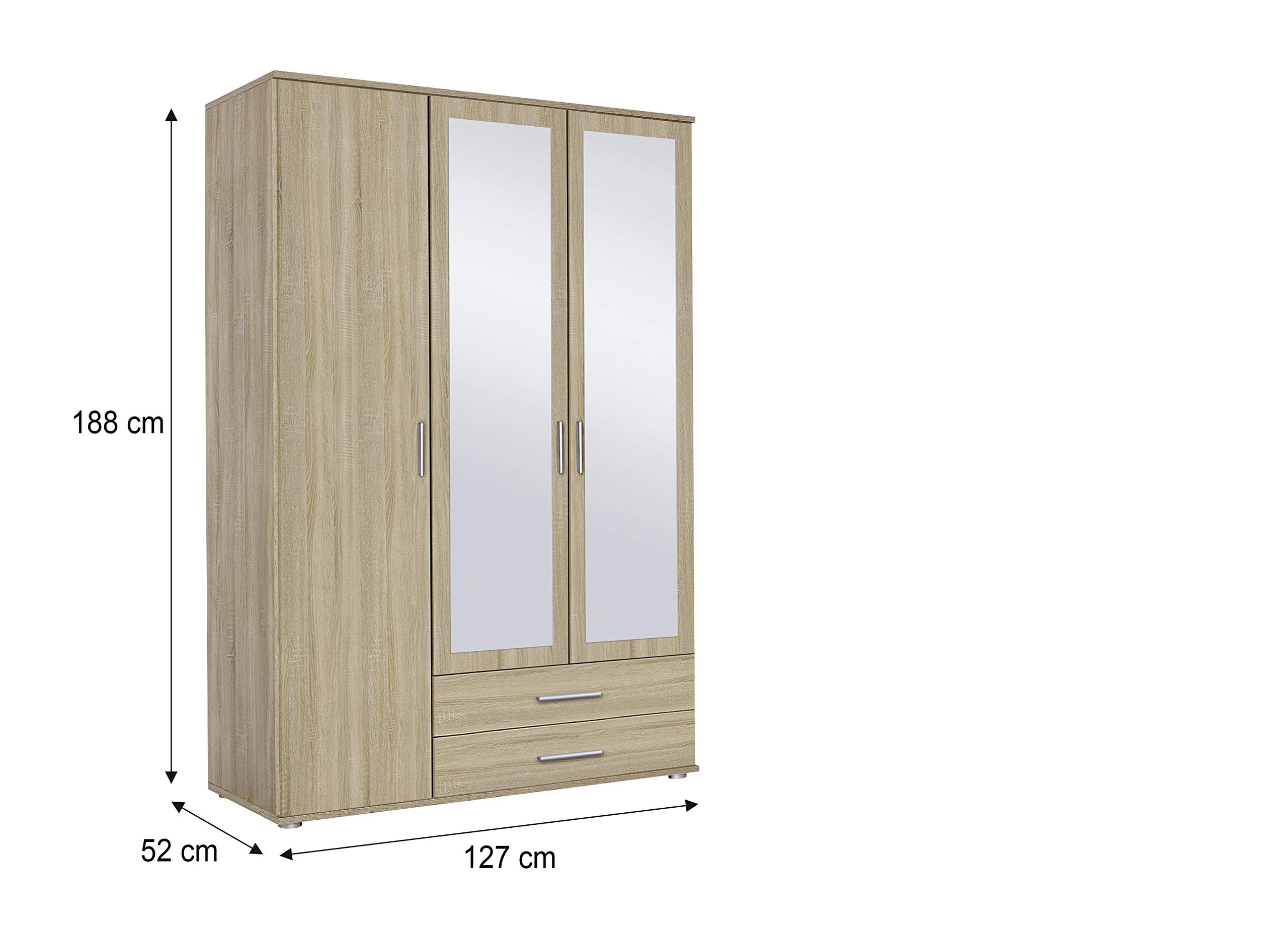 Rauch Drehtürenschrank Rasant - 3-türiger Kleiderschrank Mit Spiegel & 2 Schubladen, Eiche Sonoma