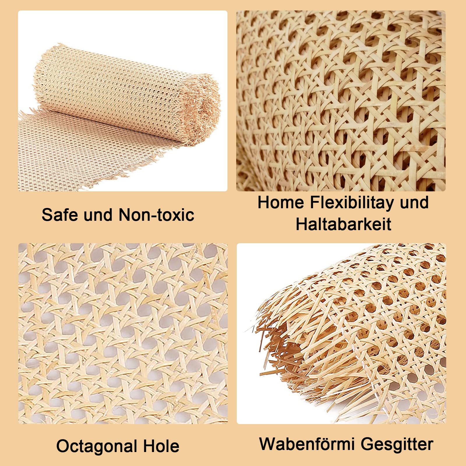 Willst du deinen Möbeln einen fresh Look verpassen? Dieses natürliche Rattan-Geflecht ist genau das Richtige für dich! Mit 40 cm Breite und satten 10 Metern Länge hast du genug Material für alle deine DIY-Projekte. Ob Stuhl, Kommode, Schrank oder sogar Lampenschirme - dieses Band aus hochwertigem Naturrattan macht alles hübscher. Das Beste: Es ist total langlebig und sogar feuchtigkeitsbeständig. Einfach vor dem Verarbeiten 20-30 Minuten in Wasser einweichen, dann lässt es sich super einfach biegen und formen. Die natürliche Maserung sieht einfach klasse aus und verleiht jedem Raum sofort Urlaubsfeeling. Und keine Sorge wegen der Pflege - einfach mit einem feuchten Tuch abwischen und fertig! Perfekt also für alle, die ihr Zuhause individuell gestalten wollen. Tipp: Wenn du mehrere Rollen bestellst, kriegst du sie als eine durchgehende Rolle - mega praktisch für größere Projekte! Also, worauf wartest du noch? Hol dir dieses vielseitige Rattan-Band und werde zum Möbel-Designer!