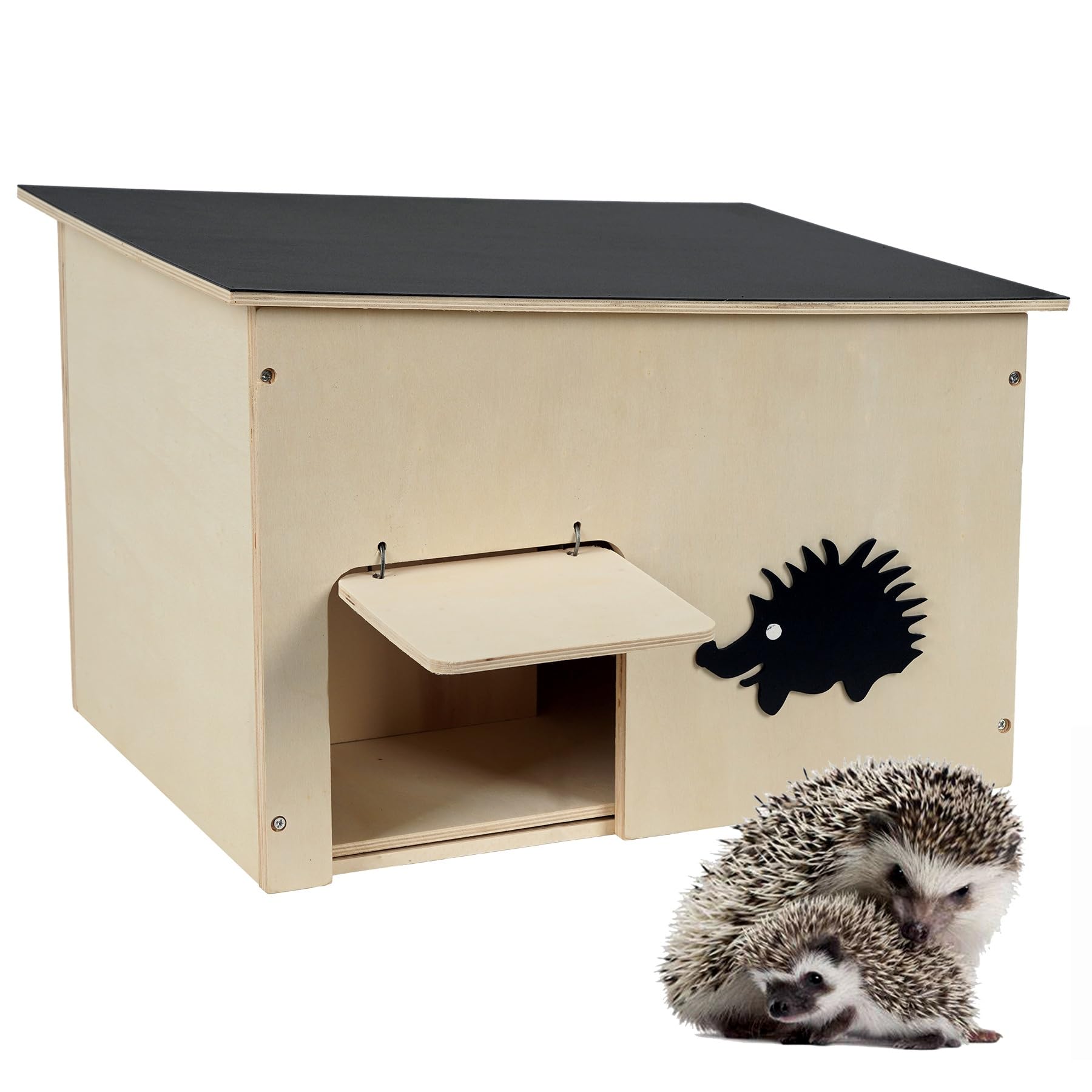 Gib den Igeln in deinem Garten ein sicheres Zuhause! Dieses YCBTREE Igelhaus mit den Maßen 44x30x20cm bietet reichlich Platz für erwachsene Igel zum Bewegen und Nisten. Der geniale Labyrintheingang und die Rattenklappe halten Fressfeinde wie Katzen und Füchse wirksam fern. Aus hochwertigem Holz mit integriertem Boden - schützt zuverlässig vor Feuchtigkeit und Kälte. Ganzjährig nutzbar als Winterschlafplatz, Nisthöhle oder einfach als gemütlicher Unterschlupf. Mit dekorativen Igel-Motiven sieht es nicht nur funktional aus, sondern auch super hübsch im Garten. Einfach selbst montieren mit Schraubendreher und den mitgelieferten Schrauben - eine tolle Aktivität für die ganze Familie! Schafft eine geschützte Umgebung, wo sich Igel sicher und wohl fühlen können. Perfekt für Gärten, Höfe und alle naturliebenden Menschen. Hilf den stacheligen Freunden durch den Winter und biete ihnen ein sicheres Zuhause!