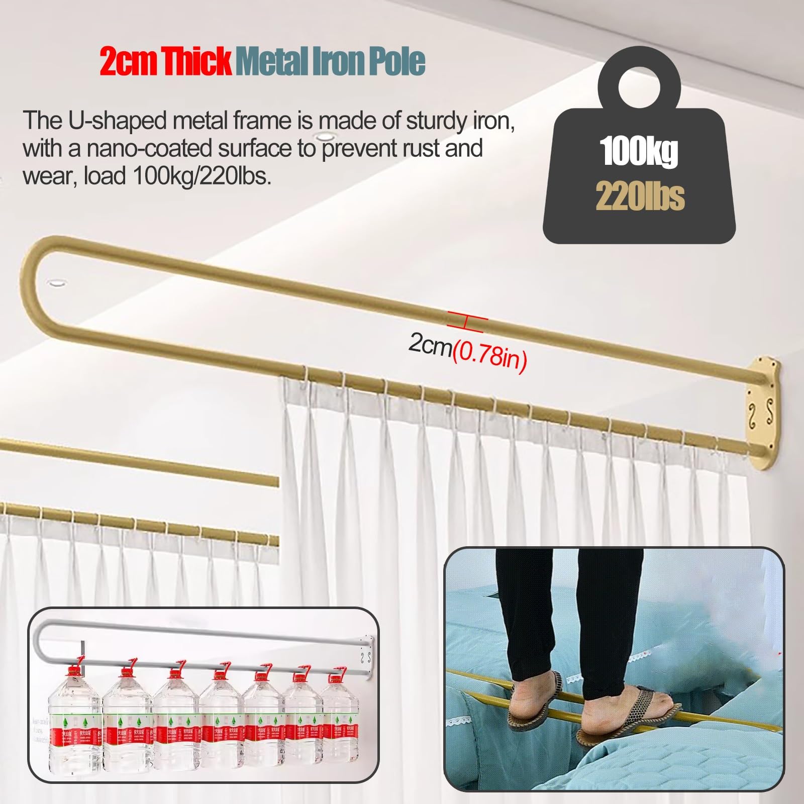 Diese U-förmige Gardinenstange ist die perfekte Lösung für mehr Privatsphäre! Aus robustem Eisen mit Nano-Lackierung, rostfrei und kratzfest. Erhältlich in zwei Größen: 200cm und 230cm Länge. Perfekt für Schönheitssalons, Kliniken, Büros oder zu Hause. Die Wandmontage ist super einfach - alles nötige Zubehör liegt bei. Mit den mitgelieferten Aufhängeringen gleiten deine Vorhänge butterweich. Ideal um Räume zu trennen, Schränke zu verstecken oder Lagerbereiche abzuschirmen. Schafft sofort private Bereiche und sieht dabei noch stylisch aus. In Minuten montiert, jahrelang genutzt!