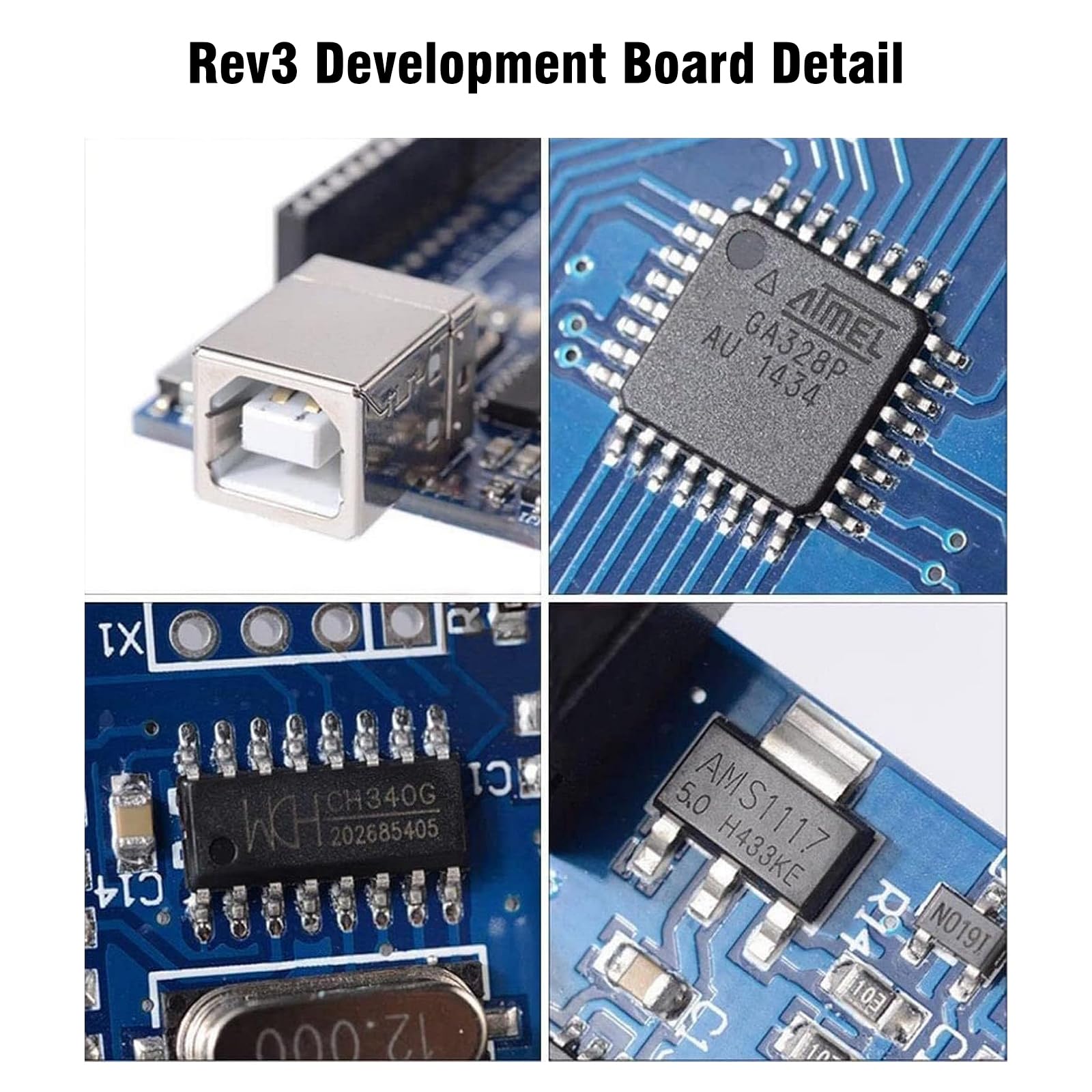 Hey du Hobby-Elektroniker! Dieses ReV3 Entwicklungsboard ist perfekt für alle, die in die Mikrocontroller-Welt einsteigen wollen. Im Set bekommst du gleich 3 Boards - ideal für Projekte mit Freunden oder als Reserve. Voll kompatibel mit der Arduino IDE, also kein kompliziertes Einarbeiten nötig. Technische Highlights: 32 KB Flash-Speicher, 14 digitale I/O Pins (davon 6 PWM), 6 analoge Eingänge und 16 MHz Taktfrequenz. Mit modernem USB Typ-C Anschluss - einfach mit dem beiliegenden Kabel verbinden und losprogrammieren! Perfekt für Robotik, IoT-Projekte, Automatisierung oder einfach zum Rumexperimentieren. Die Boards unterstützen Shields und Bibliotheken für Sensoren, Motoren und Displays. Ob Student, Hobbybastler oder Profi - hier findest du alles, was du für deine Elektronik-Projekte brauchst. Einfach drauflos programmieren und die Welt der Mikrocontroller entdecken!