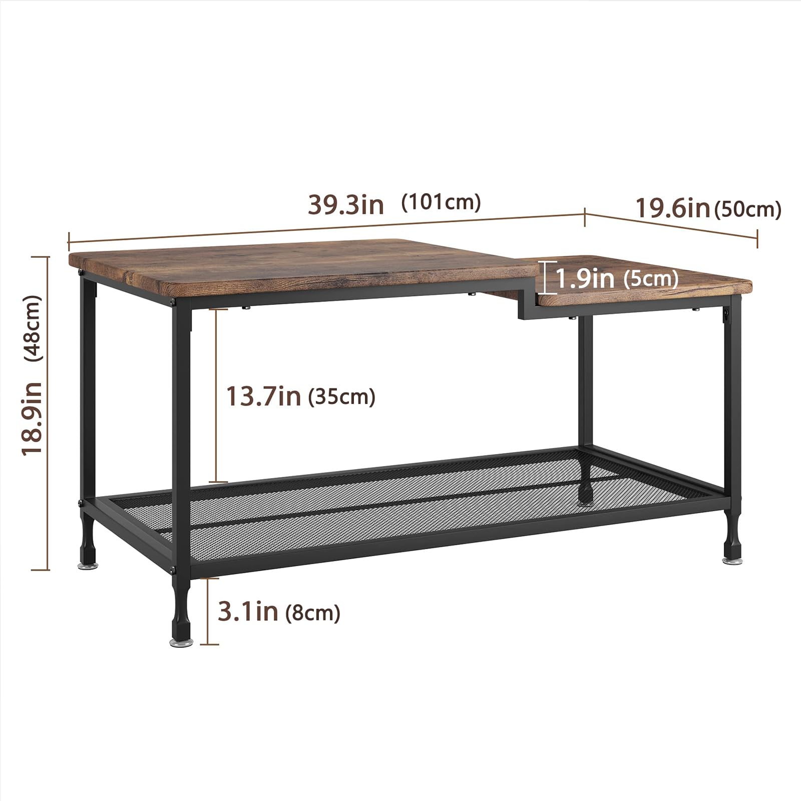 Dieser Garvee Couchtisch bringt retro-modernen Flair in dein Wohnzimmer! Mit 101x50x48cm Maßen ist er der perfekte Mittelpunkt für deine Sitzgruppe. Aus hochwertigem MDF-Holzwerkstoff und stabilem Metallgestell gefertigt, trägt er bis zu 70kg auf der Tischplatte. Das industrielle Retro-Design mit den zwei Ebenen bietet nicht nur Stil, sondern auch praktischen Stauraum für Zeitschriften, Fernbedienungen und Deko. Die wasserfeste und kratzfeste Oberfläche hält auch bei täglicher Nutzung stand. Die vier verstellbaren Füße sorgen für stabilen Stand auf unebenem Boden. Mit abgerundeten Ecken absolut kindersicher. Einfache Montage in ca. 30 Minuten - alles inklusive Werkzeug und Anleitung. Ein echter Eyecatcher für jedes Zuhause!