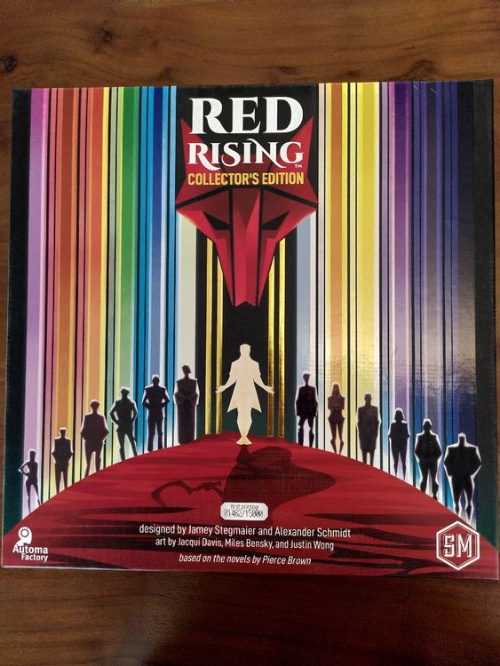 Tauch ein in die packende Welt von Pierce Browns Bestseller-Reihe! In dieser exklusiven Collector's Edition von Red Rising kämpfst du um die Vorherrschaft in einer dystopischen Zukunft, wo die Menschheit in Kasten unterteilt ist. An der Spitze die goldenen Herrscher, unten die roten Arbeiter - auf welcher Seite stehst du? Diese Special Edition enthält einzigartiges Zubehör das es sonst nirgends gibt: Edle Marker aus Metall, 21 Charakterkarten mit luxuriösem Goldfoliendruck und zusätzlich 6 stabile Kartenhalter. Perfekt für alle, die das originale Schmiedeprojekt verpasst haben aber nicht auf diese Premium-Ausstattung verzichten wollen. Strategie, Intrigen und packende Gameplay-Mechaniken warten auf dich. Ob alleine oder mit Freunden - erlebe die epische Story als interaktives Spiel. Ein Muss für Buchfans, Strategie-Begeisterte und alle, die gute Sci-Fi Geschichten lieben!