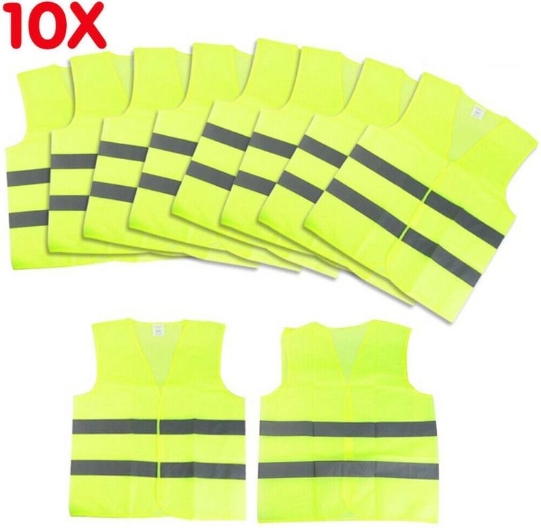 Sicherheit geht vor! Mit diesen 10 neongelben Warnwesten bist du bei Dunkelheit oder schlechter Sicht optimal geschützt. Perfekt für Autofahrer, Radfahrer, Wanderer oder Arbeitskräfte auf Baustellen! 🚗 Die Westen haben reflektierende Streifen, die das Licht von Scheinwerfern super zurückwerfen - so wirst du schon aus großer Entfernung gesehen! Mit der Universalgröße von 68x55cm passen sie über dicke Winterjacken und sind für Männer und Frauen geeignet. Aus atmungsaktivem Mesh-Material gemacht, sind sie angenehm zu tragen und nicht zu warm. Praktisch: Bei 30°C waschbar und knitterfrei! In jedem Auto sollten diese Westen mitgeführt werden - bei Panne oder Unfall können sie Leben retten! Das 10er-Set ist ideal für Familien, Firmen oder Vereine. Platzsparend verstaubar in Auto, LKW oder Baufahrzeug. Also, sichere dich und andere - mit diesen Qualitäts-Westen bist du auf der sicheren Seite! ⚠️