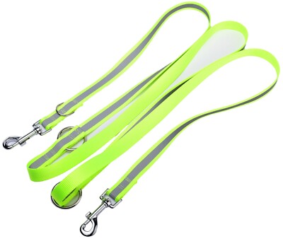Mit dieser Doppelleine hast du deinen Hund immer unter Kontrolle - und zwar sicher! Die Leine ist von 2,5m bis 6m verstellbar, je nachdem wie viel Freiraum dein Hund braucht. Die reflektierenden Streifen sorgen für bessere Sichtbarkeit bei Dunkelheit - super wichtig für abendliche Gassirunden! Aus robustem Nylon mit 25mm Breite und stabilen Karabinern, die bis zu 80kg halten. Ob großer oder kleiner Hund - hier ist für jeden was dabei. Perfekt für Training, Spaziergänge oder einfach mal mehr Bewegungsfreiheit geben. Die Handhabung ist total einfach und du musst nicht mehrere Leinen mitschleppen. Einfach die Länge anpassen und los geht's!