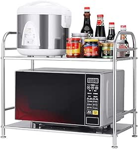 VINATO Mikrowellen Regal Höhenverstellbar - Stahlregal Mit Haken Für Küchengeräte