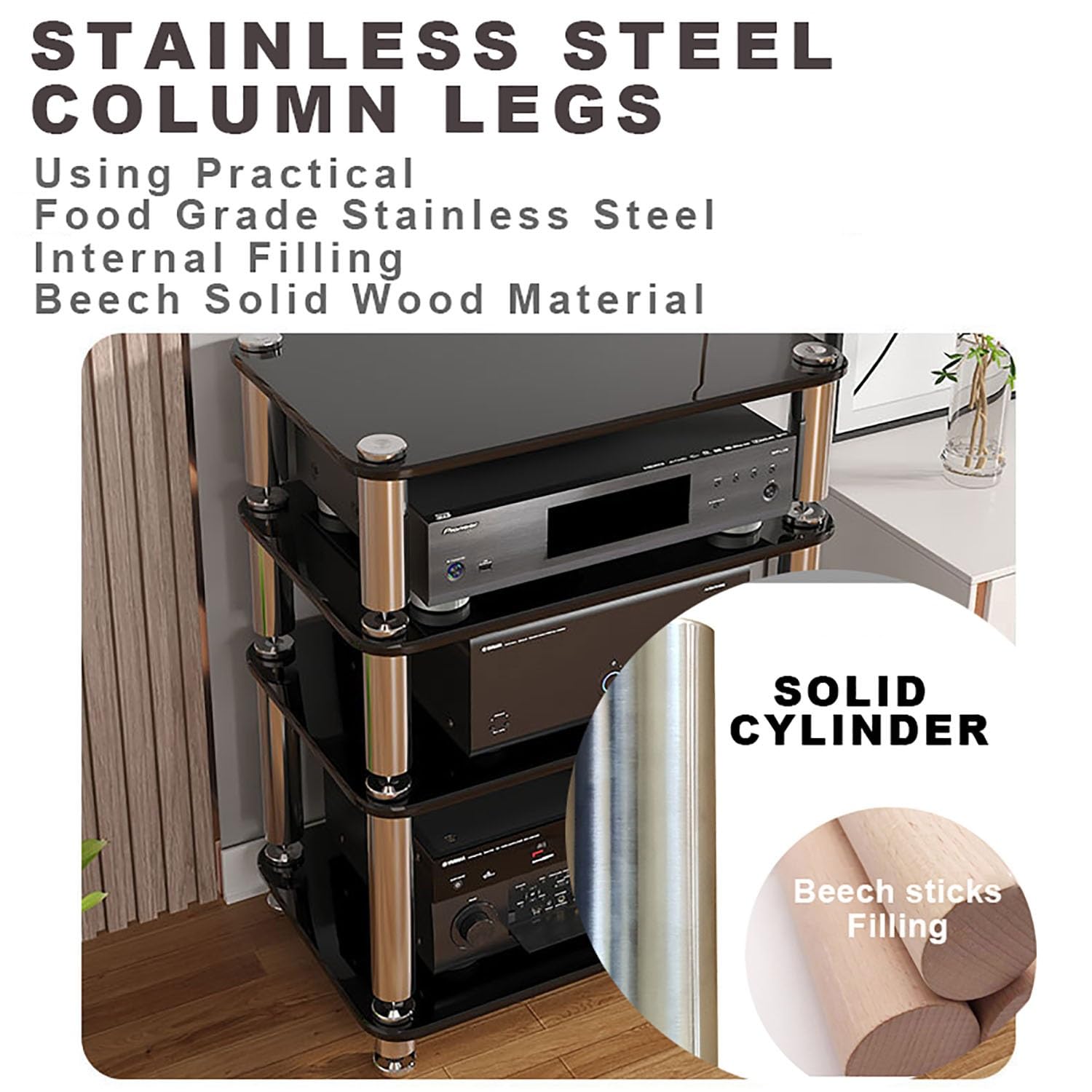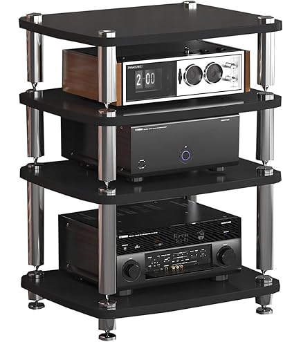 Boah, dieses HiFi-Regal ist ja mal richtig praktisch! Mit 62x57x100 cm bietet es genug Platz für deine gesamte Audio-Ausrüstung: Plattenspieler, Verstärker, Lautsprecher, Konsolen - alles findet hier seinen Platz. Die offenen Ablagen sorgen für gute Belüftung, damit nichts überhitzt. Das clevere Kabelmanagement auf der Rückseite hält die lästigen Kabel ordentlich. Aus stabilen Brettern mit Metallrahmen - hält auch schwere Geräte sicher. Das Trenngitter-Design ist perfekt für deine Vinyl-Sammlung. Montage in unter 30 Minuten - alle Teile sind beschriftet und das Werkzeug liegt bei. Ob im Wohnzimmer, Schlafzimmer oder Büro - dieses Regal sieht nicht nur gut aus, sondern bringt auch Ordnung in deine Technik. Schwarz-weißes Design passt zu jedem Einrichtungsstil. Einfach aufbauen und deine Geräte in Szene setzen!