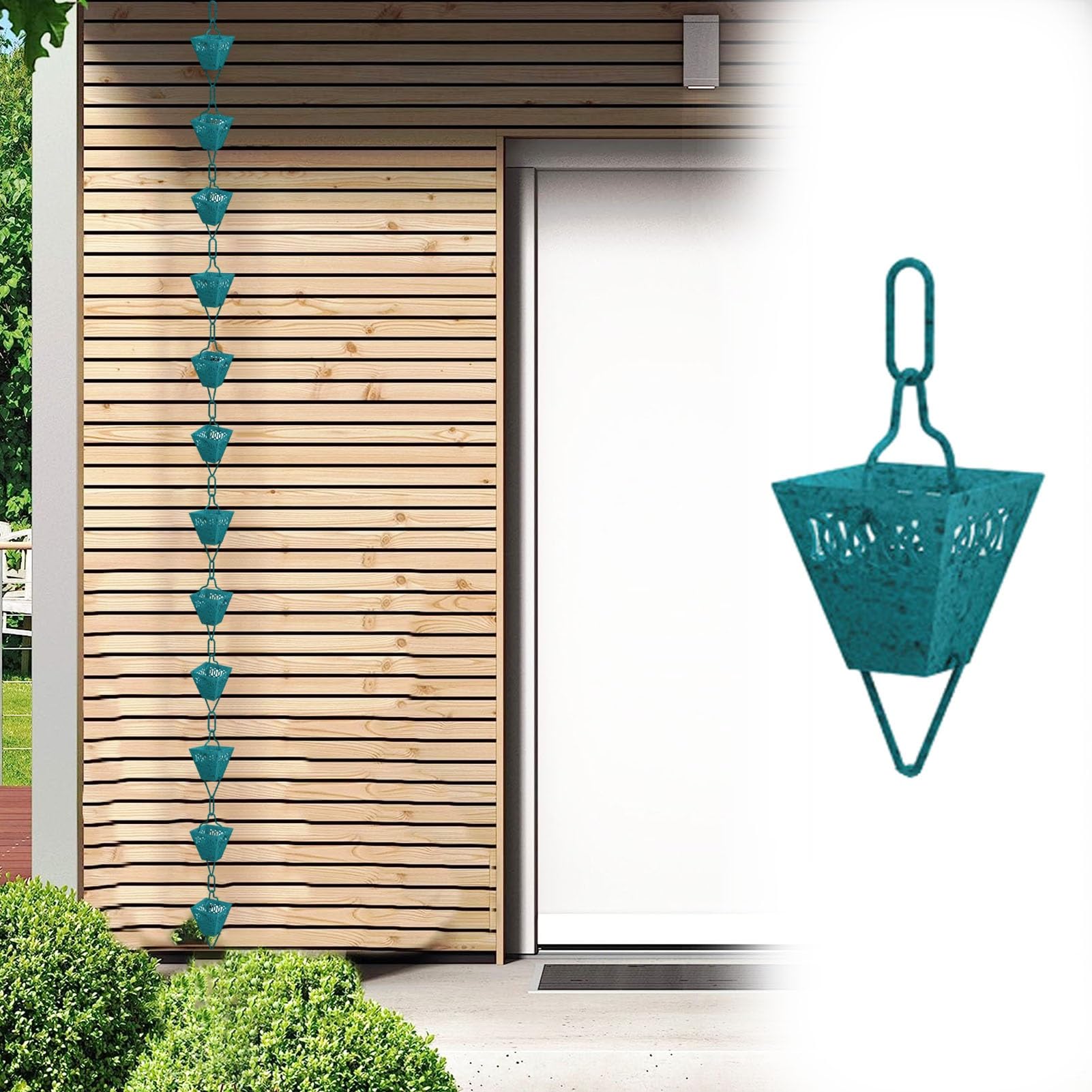 Verwandle Regen in ein Schauspiel! Diese blaue Regenkette aus Metall (100 cm) mit Kolibri- und Tassen-Motiven ist ein echter Blickfang. Einfach mit S-Haken an der Dachrinne befestigen - schon wird das Regenwasser zum dekorativen Element. Stabil, witterungsbeständig und rostfrei. Perfekt für Garten, Terrasse oder Hof. Schafft eine gemütliche Atmosphäre und ist praktisch obendrein. Mehr als nur ein Regenablauf - ein Kunstwerk!