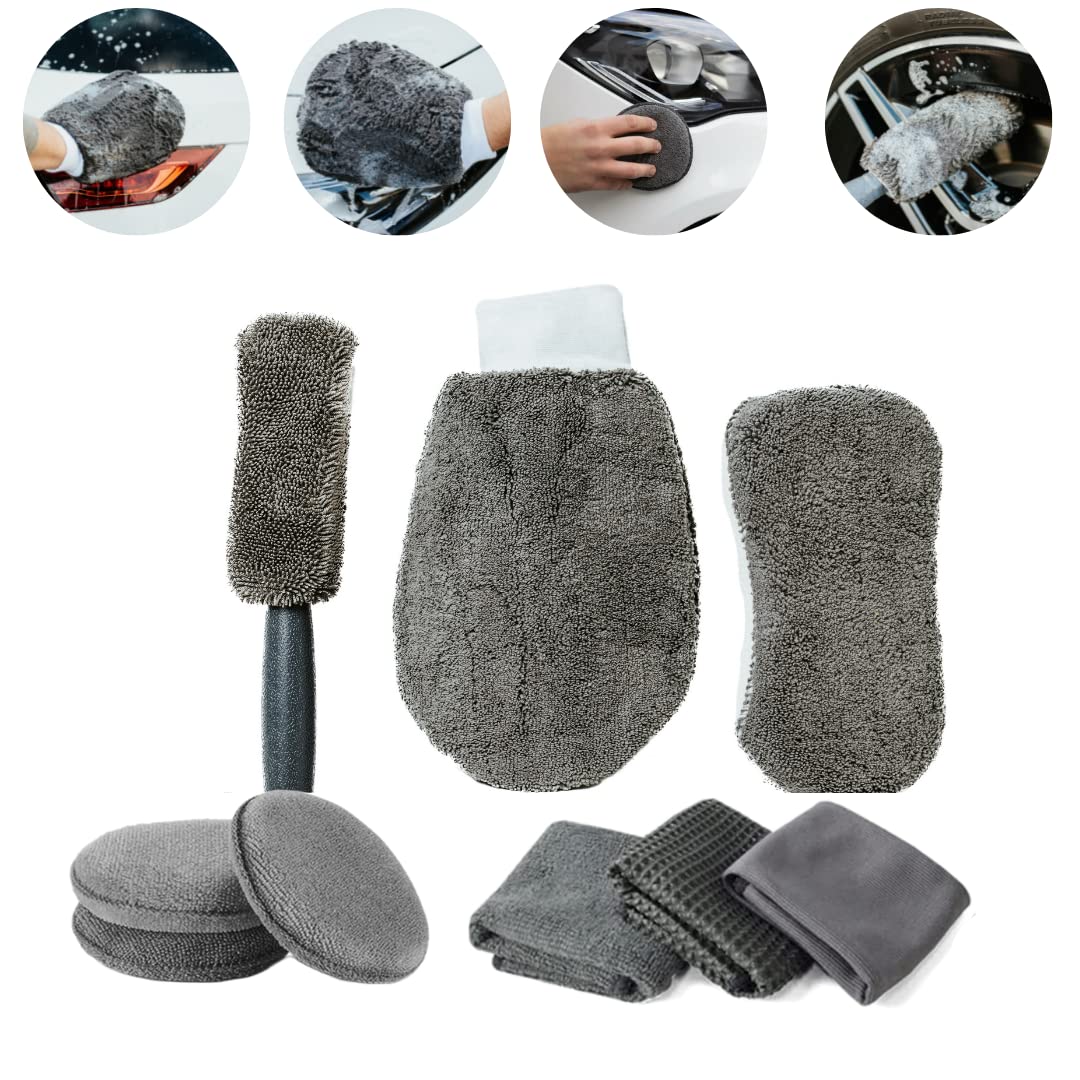 Alles für die perfekte Auto-Pflege in einem Set! Dieses 9-teilige Reinigungsset enthält alles, was du für blitzblanke Ergebnisse brauchst: Polierkissen, Waschhandschuhe, Reifenbürste, Waschschwamm und verschiedene Mikrofasertücher. Von der Karosserie über die Reifen bis zum Innenraum - jedes Teil ist für spezielle Reinigungsaufgaben optimiert. Die hochwertigen Materialien sind kratzsicher, saugstark und langlebig. Perfekt für private Autobesitzer und professionelle Anwender. Platzsparend verstaubar im Kofferraum. Mach dein Auto strahlend sauber - ganz einfach und effizient!