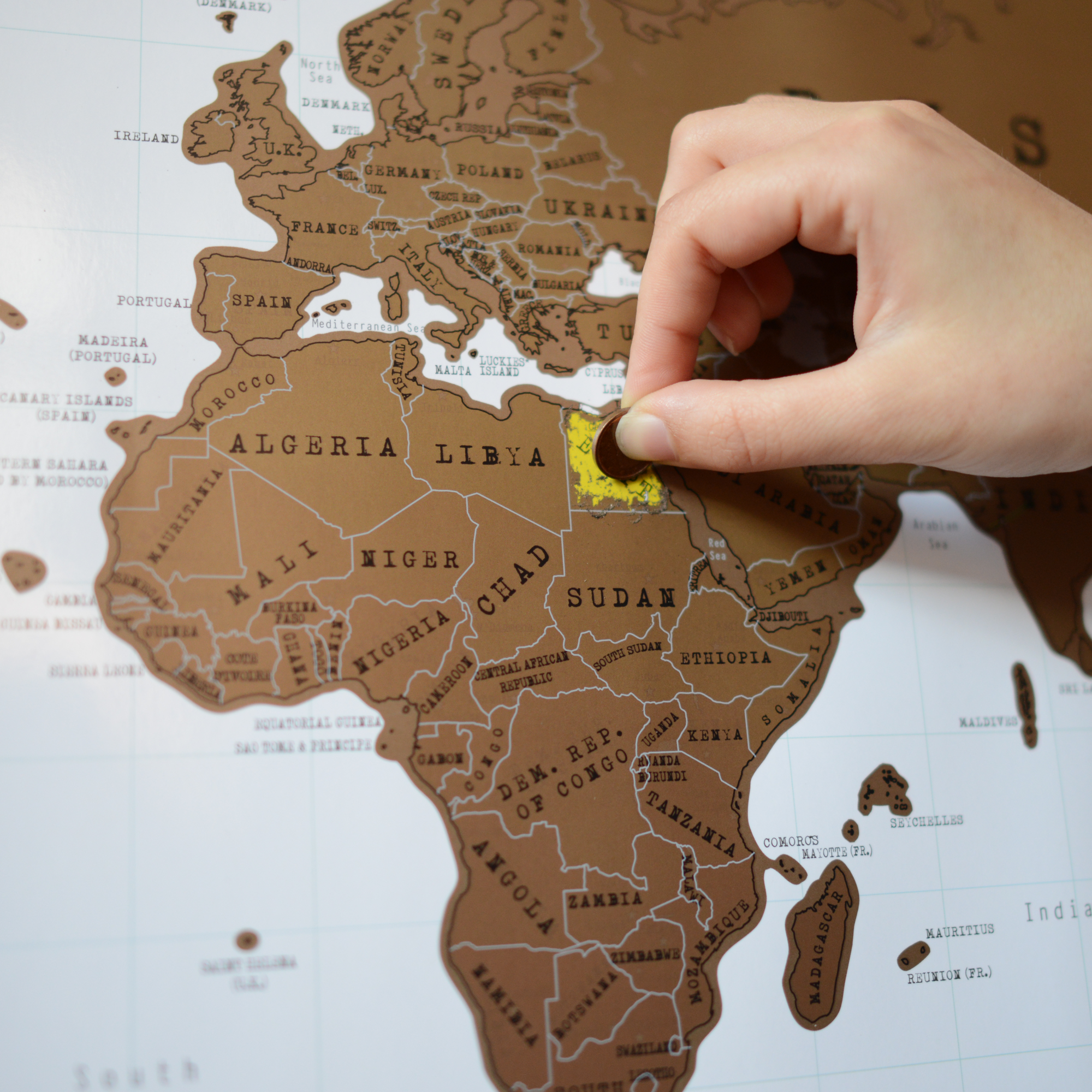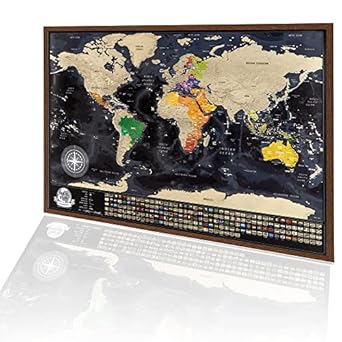 Endlich eine Rubbelweltkarte, die auch schön aussieht! Mit dem speziellen Rahmen musst du keine hässlichen Pinnadeln mehr verwenden. Einfach die besuchten Länder freirubbeln und sofort an die Wand hängen. Der coole Klapprahmen macht's möglich - kein mühsames Auf- und Abbauen mehr. Perfekt für Reiselustige, die ihre Abenteuer festhalten wollen. Kommt schon fertig eingerahmt an - einfach auspacken und aufhängen! Super Geschenk für Paare oder Weltentdecker. Macht richtig Spaß, die Karte nach jeder Reise zu erweitern!
