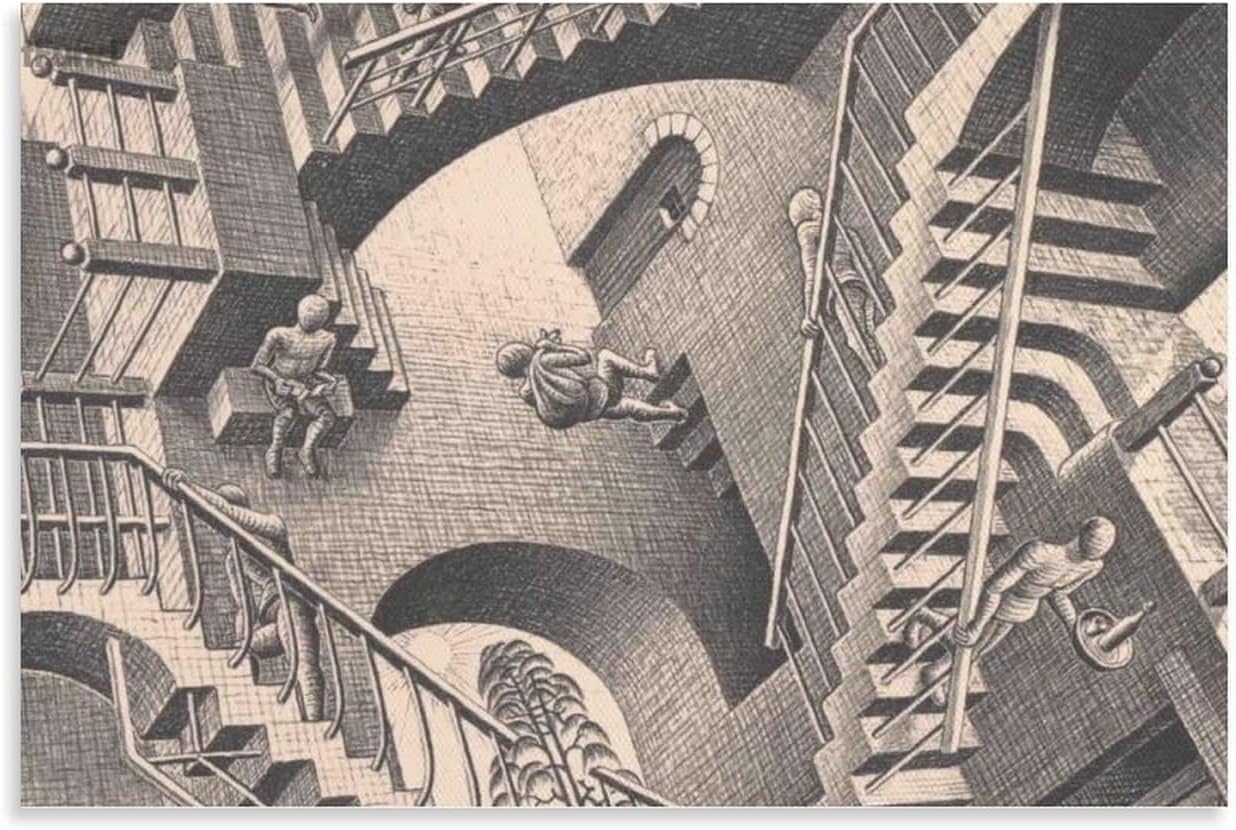 Suchst du nach einem echten Hingucker für deine Wände? Dieser M.C. Escher 'Relativität' Leinwanddruck bringt mathematische Kunst in dein Zuhause! Mit 50x50 cm ist das Poster perfekt für Wohnzimmer, Schlafzimmer oder Büro. Jeder Druck wird frisch für dich angefertigt - keine Lagerware, die vielleicht verblasst ist. Die Qualität ist einfach top: Hochauflösende Drucktechnik sorgt für gestochen scharfe Details, und im Vergleich zu Papierpostern hält die Leinwand viel länger. Das Beste: Wenn du nicht komplett zufrieden bist, kümmern wir uns sofort darum. Einfach aufhängen und staunen, wie dieses ikonische Kunstwerk deinen Raum aufwertet! Perfekt für Kunstliebhaber und alle, die was Besonderes suchen.