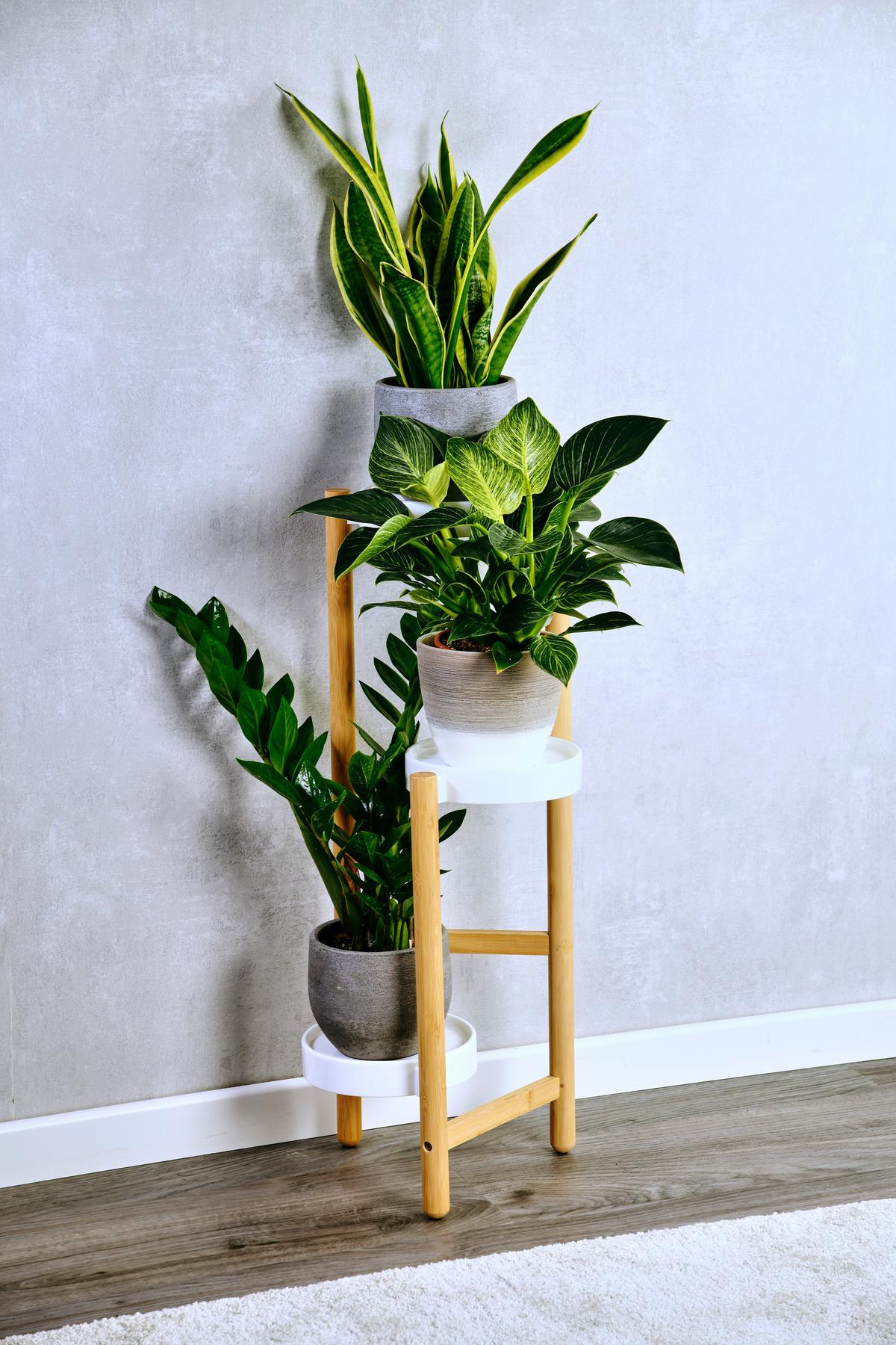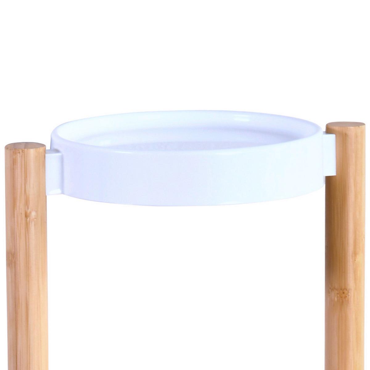 Deine Pflanzen verdienen einen schönen Platz! Dieser Bambus-Pflanzenständer ist nicht nur praktisch, sondern sieht auch noch total stylisch aus. Mit 4 Ablagen hast du genug Platz für deine grünen Lieblinge.\n\nTechnische Details:\n• Maße: 78 x 28 x 34 cm (HxBxT)\n• 4 Ablagen aus Kunststoff\n• Gestell aus natürlichem Bambus\n• Traglast pro Ablage: bis 5 kg\n• Farbe: Natur/Weiß\n\nWarum dieser Ständer so toll ist:\n• Bambus-Gestell - natürlicher Look\n• Weiße Ablagen - modern und hell\n• Viel Platz - für mehrere Pflanzen\n• Einfacher Aufbau - mit Anleitung\n• Stabil - wackelt nicht\n\nOb im Wohnzimmer, Schlafzimmer, Flur oder Wintergarten - dieser Pflanzenständer macht überall eine gute Figur. Du kannst darauf Blumentöpfe, Trockenblumen oder Deko arrangieren.\n\nDeine Pflanzen kommen so viel besser zur Geltung und du schaffst dir deine eigene kleine grüne Oase. Einfach aufbauen, Pflanzen draufstellen und den natürlichen Look genießen!