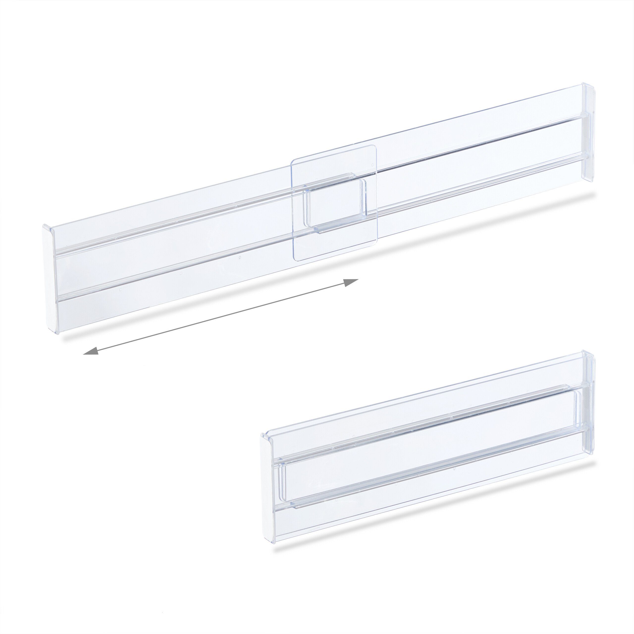 Schluss mit dem Chaos in deinen Schubladen! Dieses 4er-Set von Relaxdays bringt endlich Ordnung in deine Küchen-, Büro- oder Kommodenschubladen. Die cleveren Trennwände aus Bambus sind stufenlos verstellbar von 46 bis 56 cm und passen sich damit perfekt deinen Bedürfnissen an. Dank der praktischen Sprungfedern sitzen sie bombenfest, und die Gummierung an den Seiten verhindert lästiges Verrutschen. So hast du immer alles im Überblick - ob Besteck, Bürobedarf oder sonstige Utensilien. Die Maße von H x T: ca. 6 x 1,5 cm sind ideal für die meisten Standard-Schubladen. Einfach die Teile nach Belieben anordnen, und schon wird aus dem Schubladen-Chaos eine wohlgeordnete Ablage. Das schwarze Bambus-Design sieht dabei nicht nur stylisch aus, sondern ist auch besonders robust und langlebig. Perfekt für alle, die endlich mal aufräumen wollen!