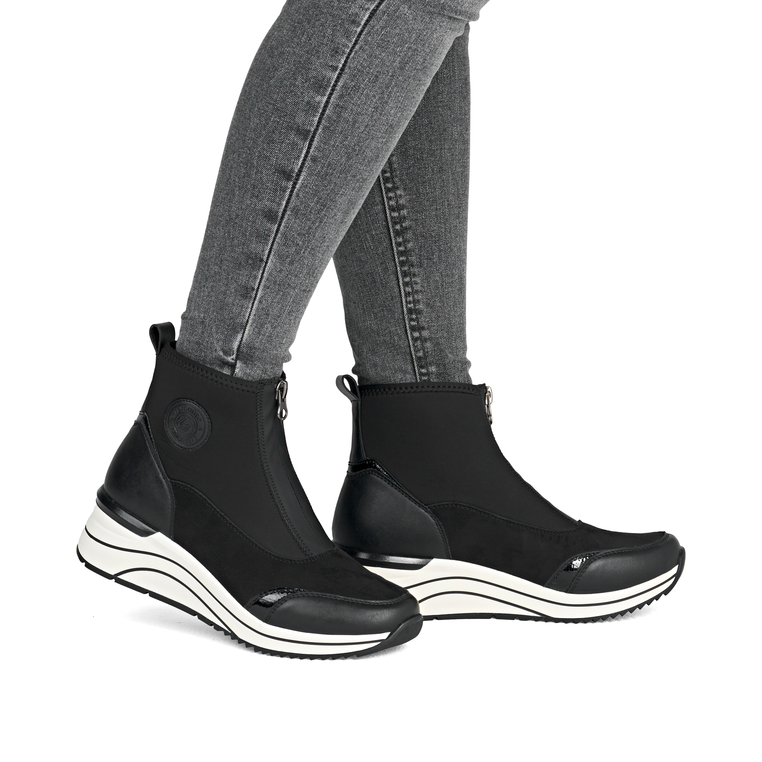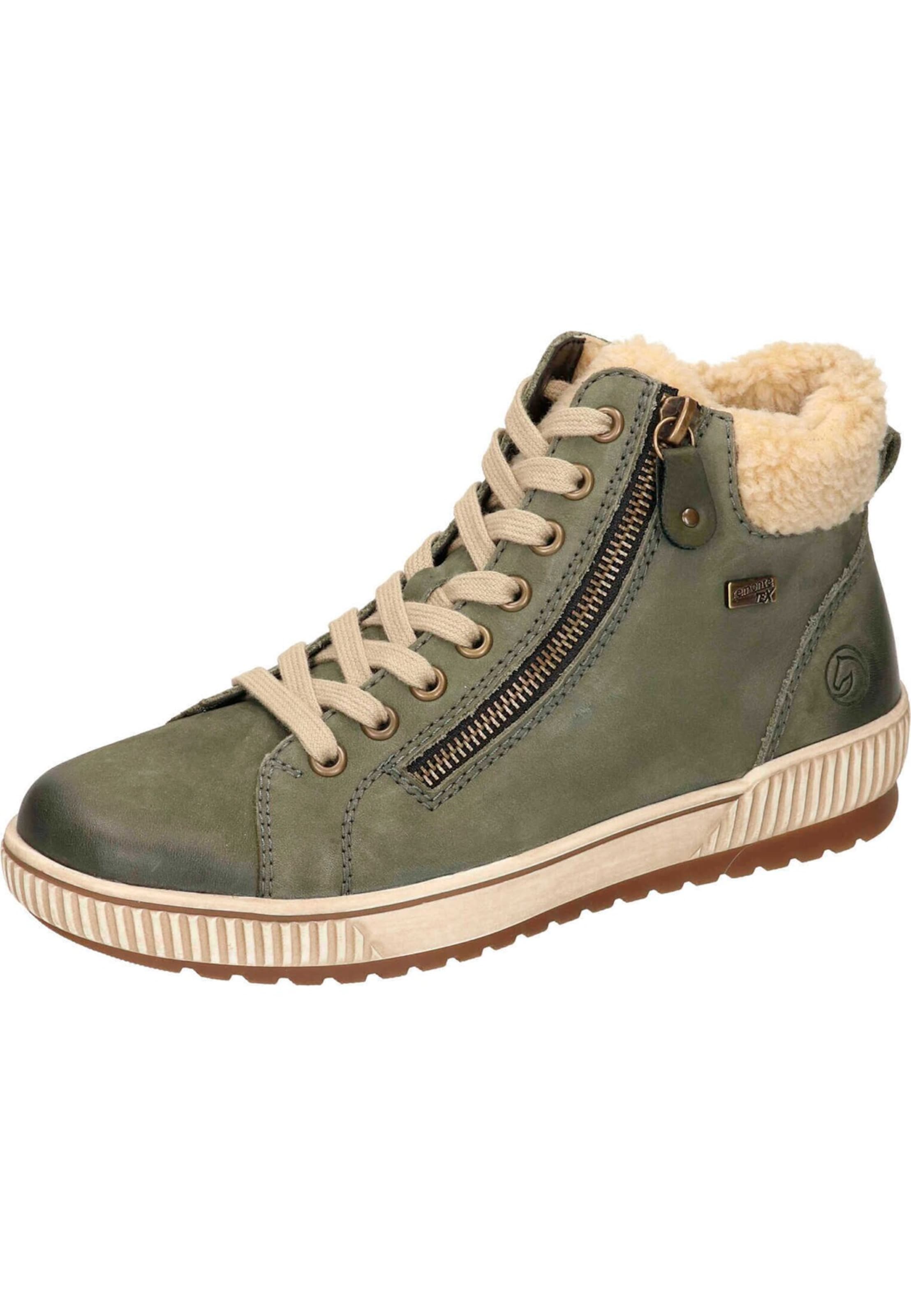 Wie auf Wolken gehen! Diese Remonte Stiefeletten in schickem Braun kombinieren maximalen Komfort mit modernem Design.\\n\\nTechnische Daten:\\n- Absatzhöhe: 5,5 cm (Keilabsatz)\\n- Schafthöhe: 10 cm\\n- Weite: H (extra weit)\\n- Verschluss: Reißverschluss\\n\\nMaterialien:\\n- Obermaterial: Echtes Leder\\n- Innenmaterial: Textil\\n- Laufsohle: PU-Sohle\\n- Decksohle: Synthetik\\n\\nKomfort-Features:\\n- Herausnehmbare Einlegesohle\\n- Ultraleichte Laufsohle\\n- Extra weite Passform\\n- Atmungsaktives Leder\\n- Schockabsorbierend\\n\\nDer Reißverschluss macht das An- und Ausziehen super einfach, der Leo-Print verleiht den Stiefeletten einen modernen Touch. Perfekt für den Alltag, Büro oder Freizeit!