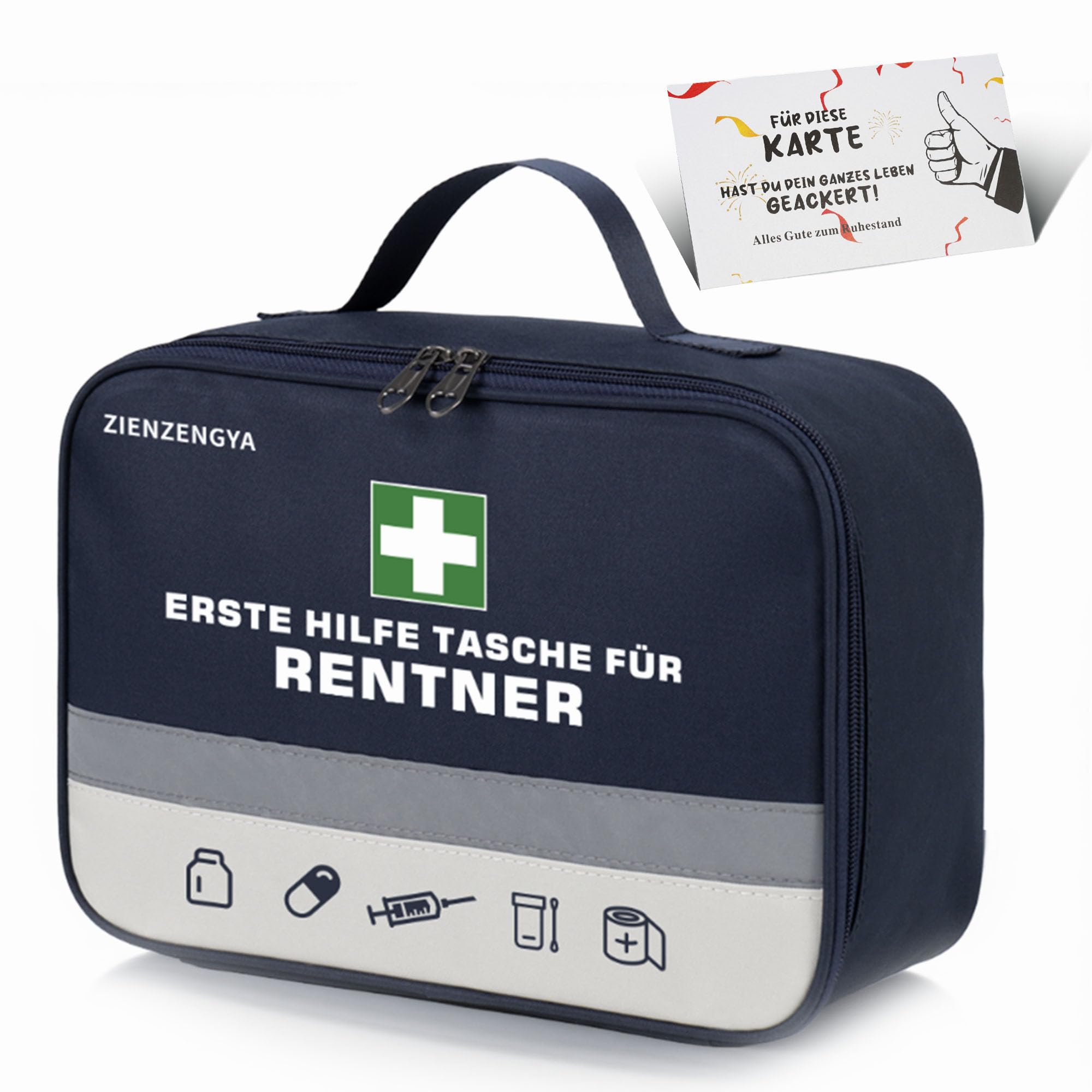 Ein Kollege geht in Rente? Dieses originelle Geschenk-Set bringt garantiert ein Lächeln ins Gesicht! Die 'Erste Hilfe Tasche für Rentner' aus robustem Oxford-Nylon ist regen- und kratzfest, mit mehreren Innenfächern und stabilen Reißverschlüssen. Maße: 28x11x19 cm - Platz für bis zu 6 Liter Inhalt! Perfekt um kleine Geschenke, Medikamente oder Alltagsgegenstände wie Brillen und Socken zu verstauen. Mit lustigen Aufdrucken und reflektierenden Streifen für bessere Sichtbarkeit. Inklusive Karte zum persönlichen Beschreiben - wird so zu einem einzigartigen Geschenk. Ideal für Kollegen, Mama, Opa oder Freunde zum Renteneintritt. Achtung: Nur die Tasche wird geliefert, ohne Inhalt! Ein witziges und praktisches Geschenk für den Start in den Ruhestand.