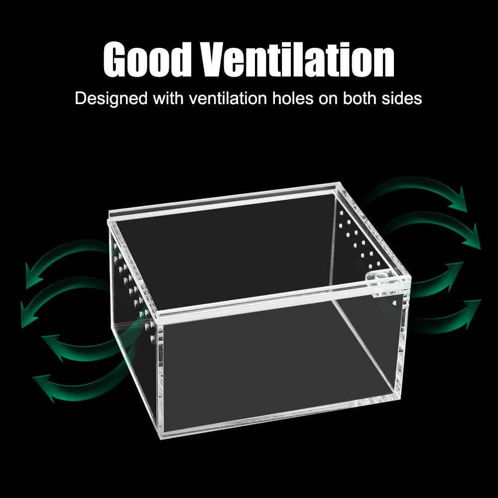 Wow, dieses mini Terrarium von Zyiphor ist perfekt für kleine Reptilien und Insekten! Mit 15x15x15cm genau die richtige Größe für Spinnen, Skorpione, kleine Frösche oder Gottesanbeterinnen. Super transparentes Acryl - 360° Rundumsicht um deine Tiere zu beobachten! Mit mehreren Belüftungsöffnungen - für perfektes Klima im Inneren. Einfach zusammenzubauen mit Gummiringen - kein Werkzeug nötig! Der Magnetverschluss am Deckel sorgt für sicheren Verschluss. Perfekt für Züchter, Tierhalter oder einfach für Reptilien-Fans. Du kannst verschiedene Habitate gestalten - ob Wüste, Regenwald oder Wasserlandschaft. Einfach zu reinigen und zu pflegen. Auch super als Transportbox oder Quarantäne-Becken. Also, wenn du ein neues Zuhause für deine kleinen Lieblinge suchst, ist dieses Terrarium genau das Richtige! Deine Tiere werden sich darin pudelwohl fühlen!