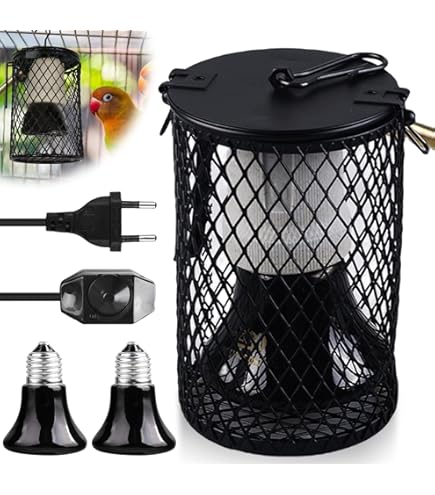 Perfekt für deine Reptilien! Diese 100W Keramik-Wärmelampe mit Schutzkorb sorgt für die ideale Temperatur im Terrarium. Mit E27-Fassung passt sie in jede Standard-Lampe.\n\nDer Schutzkorb verhindert, dass deine Tiere die heiße Birne berühren - super sicher also! Der Federhaken ermöglicht einfaches Aufhängen über dem Terrarium.\n\nHilft bei der Kalziumaufnahme und beugt Knochenkrankheiten vor. Ideal für Schildkröten, Schlangen, Chamäleons und andere Reptilien.\n\nEinfach installieren und deine Tiere genießen die wohlige Wärme. Besonders im Winter unverzichtbar für artgerechte Haltung!