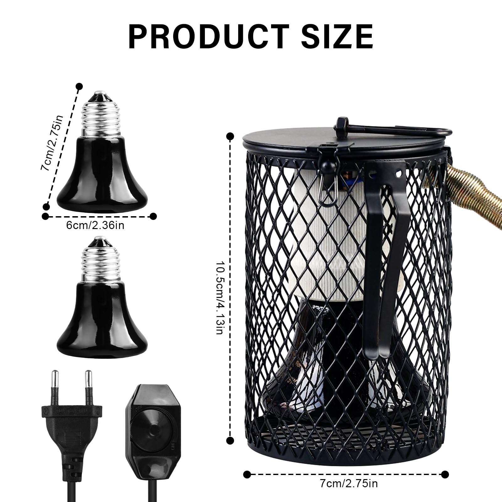 • Reptilien Wärmelampe 100W Mit Schutzkorb - E27 Keramik Heizlampe Für Terrarium