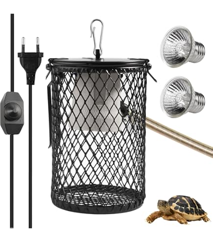 Der Metall-Schutzkorb ist super praktisch: Er verhindert, dass eure neugierigen Tierchen die heiße Lampe berühren und sich verbrennen. Und falls mal was kaputt geht - kein Risiko für Stromschläge! Die Haken an der Oberseite machen die Montage total einfach.