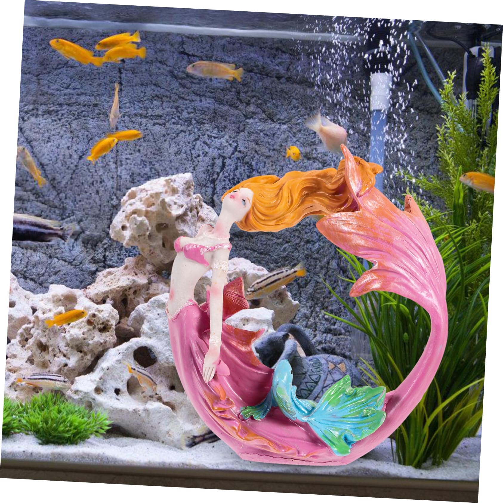 Tauche ein in eine magische Unterwasserwelt! Diese bezaubernde Meerjungfrau-Statue aus hochwertigem Harz verleiht deinem Zuhause oder Aquarium eine märchenhafte Atmosphäre. Mit den Maßen 23x9,5x9,5cm ist sie der perfekte Blickfang für jedes Regal, jeden Tisch oder natürlich für dein Aquarium. Die liebevoll gestalteten Details und die bunten Farben machen jede Meerjungfrau zu einem einzigartigen Kunstwerk. Das Harz-Material ist nicht nur langlebig, sondern auch angenehm anzufassen und verblasst nicht so schnell. Ob als Deko fürs Wohnzimmer, als besonderes Accessoire im Badezimmer oder als Highlight im Aquarium - diese Meerjungfrau bringt überall eine Portion Magie mit. Auch ein tolles Geschenk für Meerjungfrau-Fans oder alle, die ihr Zuhause mit kreativen Accessoires verschönern möchten. Einfach hinstellen und staunen - diese Meerjungfrau verwandelt jeden Raum in eine geheimnisvolle Unterwasserwelt!
