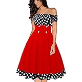 • Retro Cocktailkleid Damen 50er Jahre - Polka Dot Off-Shoulder A-Linie Für Festliche Anlässe