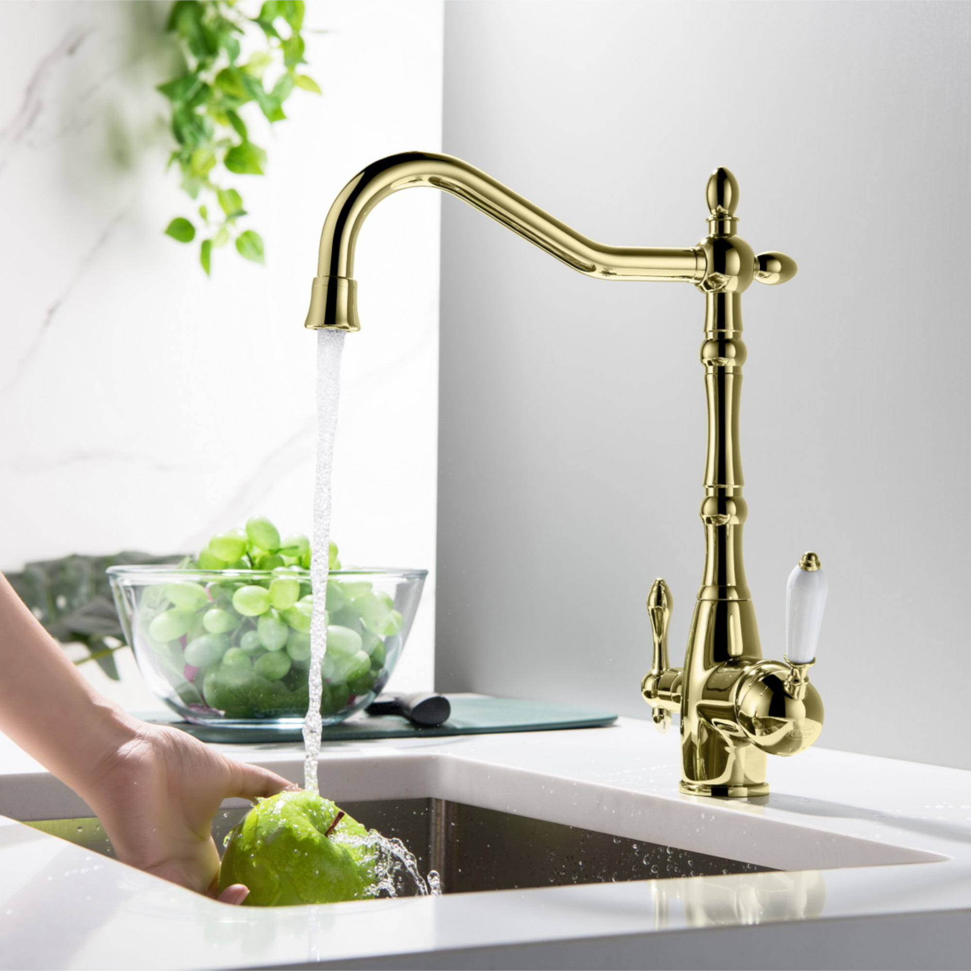 Charmant und praktisch! Dieser Retro-Wasserhahn bringt Landhaus-Flair in deine Küche. Aus massivem Messing, schwarz lackiert - robust und langlebig. Mit 360° drehbarem Auslauf und getrennter Warm-Kalt-Regulierung. Einfach zu montieren, inklusive Anschluss-Schläuchen. Ob für die Küche oder den Waschraum - dieser Hahn ist ein echter Hingucker und macht jeden Raum gemütlicher. Traditionelles Design mit moderner Technik - einfach perfekt!