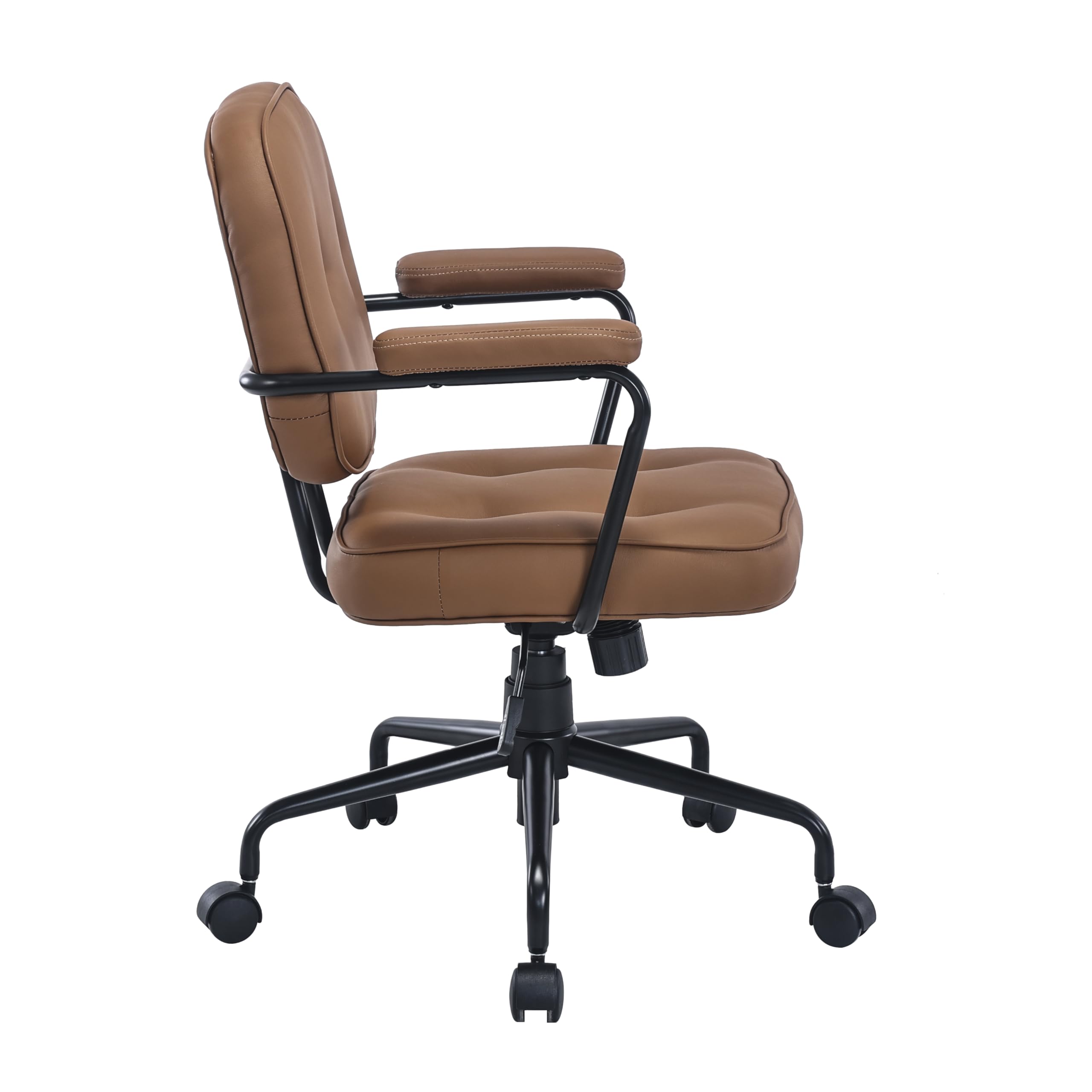 Dieser Retro-Bürostuhl von SEEDWAVE kombiniert vintage Look mit modernem Komfort! Mit Wippfunktion für entspanntes Schaukeln während der Arbeit. Höhenverstellbarer Gaslift (TÜV-zertifiziert) trägt bis 125kg. Aus feinem PU-Leder mit hoch elastischem Schaumstoff - super bequem auch bei langen Sitzungen. Der dunkelbraune Look mit schwarzem Metallgestell ist ein echter Hingucker. Perfekt für Home Office, Arbeitszimmer oder gemütliche Leseecke. Ergonomisches Design das Rücken und Nacken schont. Macht langes Sitzen zur Wohlfühl-Experience!