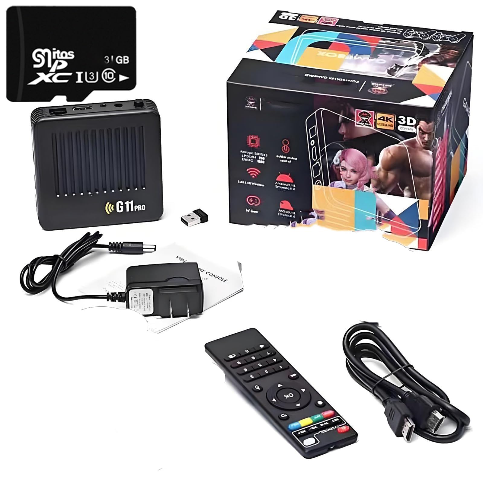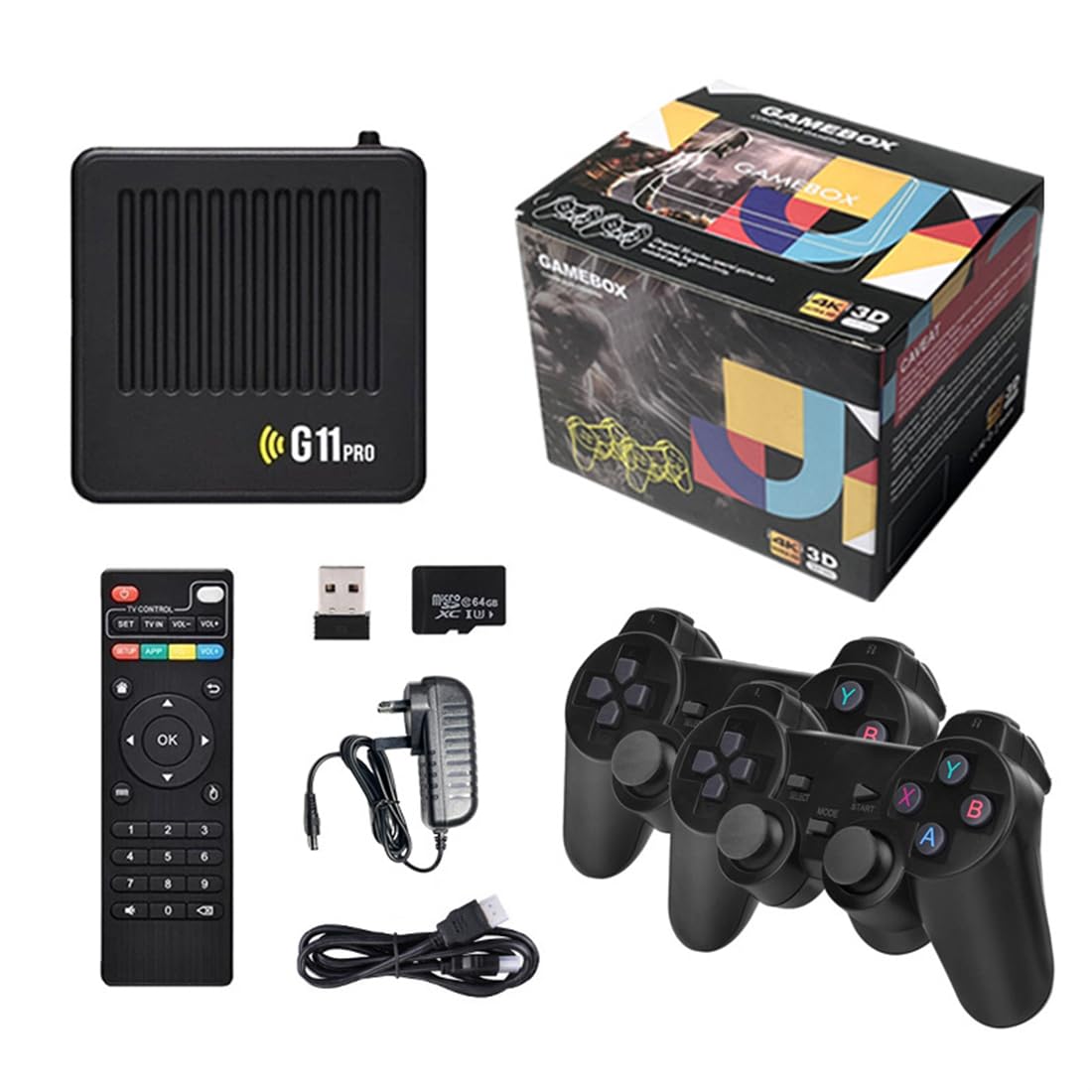 Zocke dich durch die 80er und 90er! Die Retrowave G11 Pro bringt über 100.000 Retro-Klassiker in atemberaubender 4K-Qualität auf deinen Bildschirm. Inklusive 2 kabellosen Controllern für epische Multiplayer-Matches. Einfach per HDMI anschließen und losspielen - kein Installationsstress! Komplettset mit Konsole, Gamepads, USB-Empfänger, Netzteil, Fernbedienung und HDMI-Kabel. Wähle zwischen 64GB (30.000 Spiele), 128GB (40.000 Spiele) oder 256GB (100.000 Spiele). Maße: 14x14x3,5cm, Gewicht 700g. Perfekt für gemütliche Spieleabende mit Familie und Freunden. Hol dir den Nostalgie-Kick pur - damals war doch alles besser, oder? Time to play!