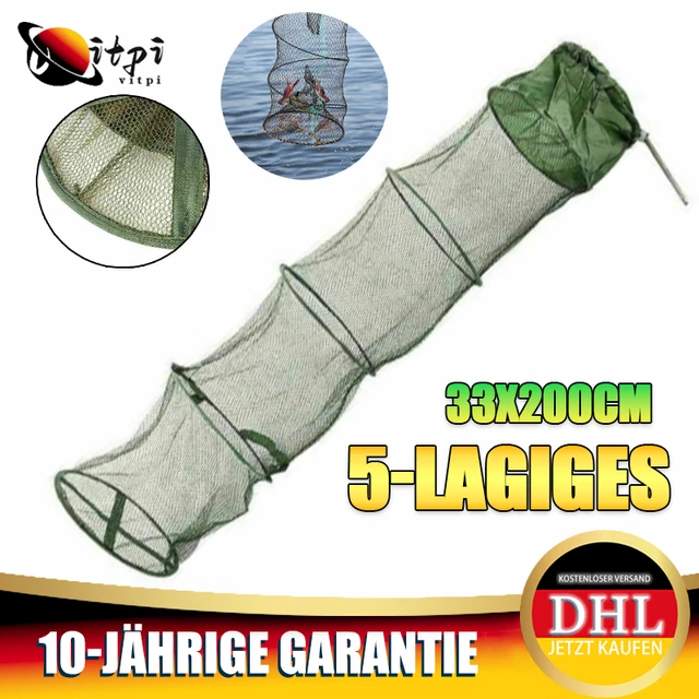Für alle Angler und Naturfreunde! Diese faltbare Fisch-Reuse von LIOOBO ist echt praktisch - einfach aufstellen, Köder rein und ab ins Wasser. Mit 75x40x40cm Größe hat sie genug Platz für Fische, Krebse, Aale oder Garnelen. Aus robustem Nylon-Material, das sowohl in Süß- als auch Salzwasser hält. Das coole: Sie lässt sich nach dem Gebrauch einfach zusammenfalten - super platzsparend für den Transport! Nur 243g leicht, also kein Problem sie mit zum Angelausflug zu nehmen. Einfach Köder rein, ins Wasser senken und warten - die Fische kommen von alleine! Perfekt für Flüsse, Seen oder Meer. Aber Vorsicht: Bitte immer vorsichtig mit den scharfen Kanten umgehen und gefangene Tiere ordnungsgemäß behandeln. Ob du nun lebende Köder fangen willst oder einfach mal was anderes ausprobieren möchtest - mit dieser Reuse macht Angeln richtig Spaß!