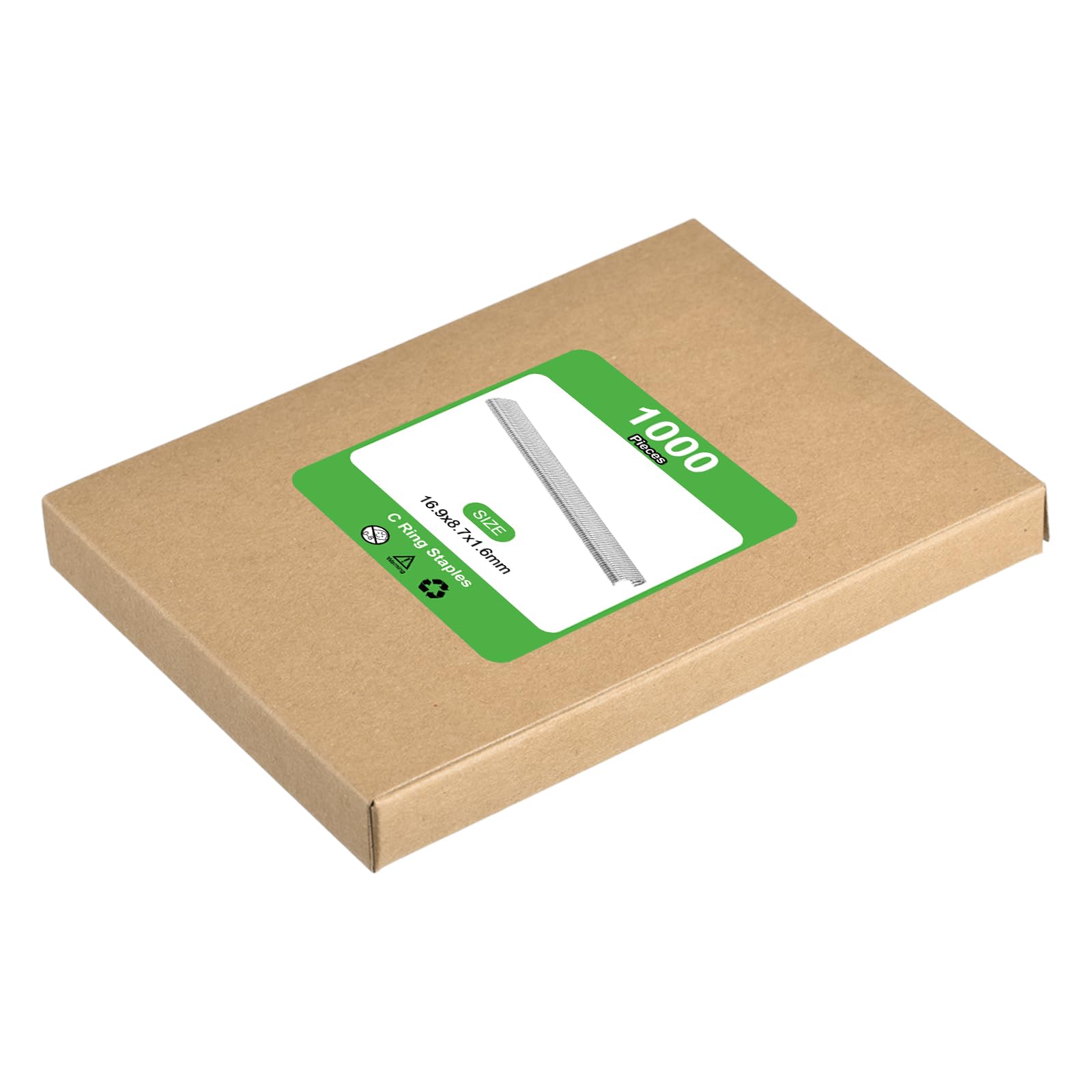 Für alle Heimwerker und Profis! Diese C-Ring-Heftklammern aus verzinktem Stahl sind genau das Richtige für deine Projekte. Mit einer Außenkrone von 16,9mm und 8,7mm Höhe passen sie perfekt in C-Ring-Heftgeräte. Die verzinkte Oberfläche schützt vor Rost und verhindert Flecken auf Holzoberflächen. Super für Sofa- und Matratzenfedern, Autositze, Zäune oder zum Bündeln von Materialien. Im Paket sind satte 1000 Stück enthalten - da hast du lange was davon. Einfach ins Heftgerät einlegen und los geht's! Qualität, die sich sehen lassen kann.