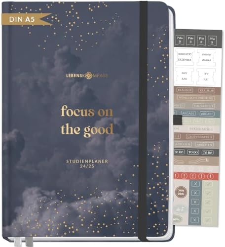 Endlich mehr Struktur im Alltag! Der Lebenskompass Kalender 2025 ist dein perfekter Begleiter für ein organisiertes Jahr. Mit dem kompakten A5-Format passt er super in jede Tasche und ist ideal für unterwegs. Das edle Hardcover mit Goldprägung sieht nicht nur toll aus, sondern ist auch mega stabil. Besonders praktisch: Die Spiralbindung lässt sich komplett flach aufschlagen - so macht Planen richtig Spaß! Der Wochenplaner im Punktraster-Design gibt dir maximale Freiheit für deine Notizen und To-dos. Dazu kommen achtsame Impulse und Selbstfürsorge-Tipps, die dir helfen, entspannt durchs Jahr zu kommen. Mit Monatsübersichten, Gummiband zum Schließen und hochwertigem FSC-zertifiziertem Papier ist dieser Kalender ein echter Allrounder für alle, die mehr Ordnung und Achtsamkeit in ihren Alltag bringen wollen. Perfekt für Beruf, Studium oder einfach nur für dich selbst!
