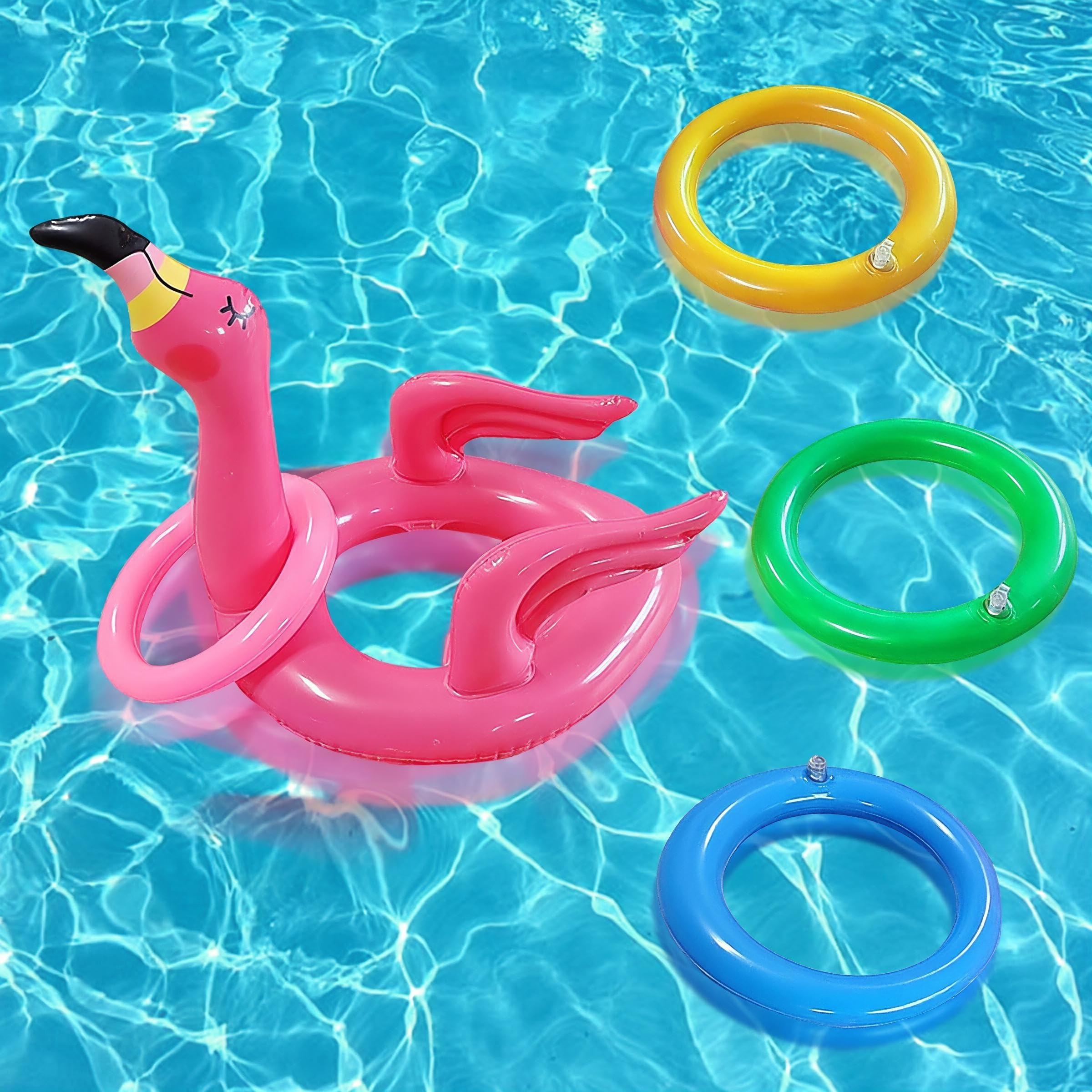 Riesenspaß für den nächsten Pool-Tag! Dieses süße Flamingo-Ringwurfspiel bringt Action ins kühle Nass. Im Set enthalten: 1 aufblasbarer Flamingo-Ständer und 4 bunte Ringe zum Werfen. Super einfach aufzublasen - mit der beiliegenden Handpumpe geht's ratzfatz. Perfekt für Kindergeburtstage, Familienfeiern oder einfach so zum Spielen im Garten. Macht nicht nur Spaß, sondern fördert auch die Motorik der Kleinen. Nach dem Spielen einfach Luft rauslassen und platzsparend verstauen. Ideal für drinnen und draußen, ob im Pool, am Strand oder im Garten. Die bunten Farben sehen total fröhlich aus und laden sofort zum Spielen ein. Einfach bestellen und den Sommer noch spaßiger machen! Perfekt für alle die Abwechslung im Wasser suchen. Hol dir dieses coole Spiel und werde zum Pool-Party-König!