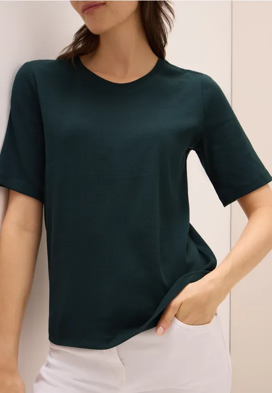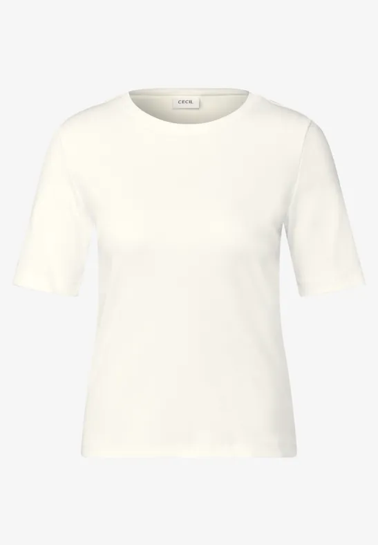 Das perfekte Basic-Shirt für jeden Tag! Das Cecil Ripp T-Shirt überzeugt mit seinem zeitlosen Design und hohem Tragekomfort. Aus weichem Baumwollmix mit Stretchanteil liegt es angenehm auf der Haut und bewegt sich mit dir. Der klassische Rundhalsausschnitt sitzt perfekt und die Rippstruktur verleiht dem Shirt eine moderne Note. Kurzarm und unkompliziert - genau das, was man für den Alltag braucht. Ob unter der Jacke, zum Rock oder zur Jeans - dieses Shirt passt immer! Perfekt für Damen, die Wert auf qualitativ hochwertige Basics legen, die lange halten und gut aussehen. Einfach anziehen und wohlfühlen - mehr braucht es manchmal nicht für einen guten Tag!