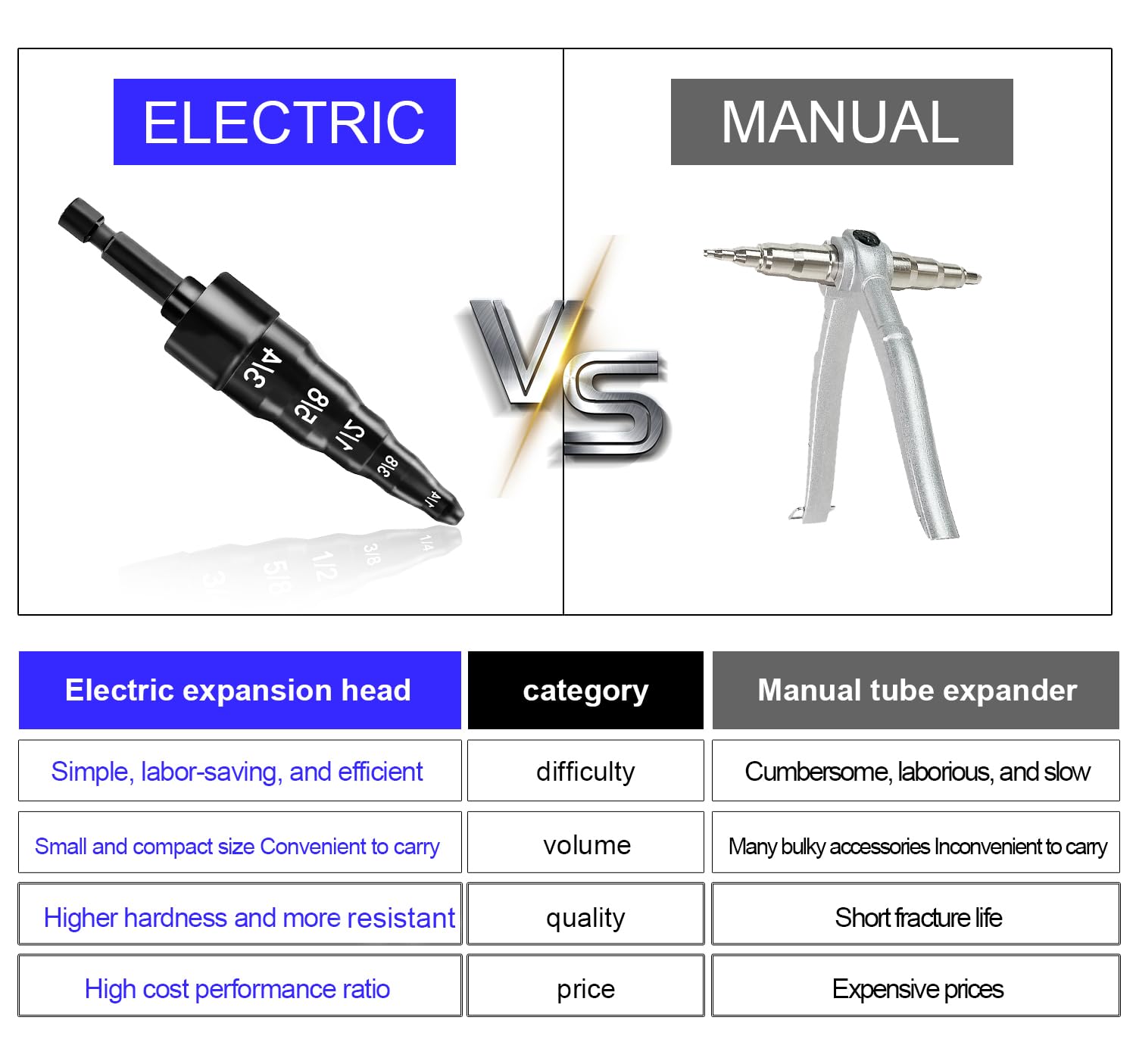 Für alle Klima- und Kühltechniker: Dieses 5-in-1 Rohr-Expander Set macht die Arbeit echt einfacher! Kompatibel mit 5 gängigen Rohrgrößen: 1/4, 3/8, 1/2, 5/8 und 3/4 Zoll. Einfach in den Bohrer einspannen und schon kannst du Kupferrohre präzise erweitern. Aus Chrom-Vanadium-Stahl - robust und langlebig. Perfekt für die Reparatur von Klimaanlagen, Kühlschränken oder Kältetechnik. Das Set ist kompakt und passt in jeden Werkzeugkoffer. Achtung: Nach Gebrauch wird das Werkzeug heiß - besser abkühlen lassen bevor du es anfasst! Professionelles Werkzeug für saubere Verbindungen und effizientes Arbeiten.