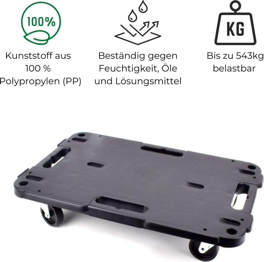 Schwere Lasten bewegen war noch nie so einfach! Dieser eckige Transportroller mit cleverem Klicksystem macht dich zum Transport-Profi. Mehrere Rollbretter einfach zusammenklicken - für große Möbel oder Paletten! Mit 360°-Transportrollen aus Stahl - wendig auch in engen Räumen! Rutschfeste, gerippte Oberfläche - alles bleibt sicher liegen! Tragegriffe an allen vier Seiten - leicht zu handhaben! Nur 1,7kg leicht - aber trägt schwere Lasten! Zugösen für Seilführung - ziehen statt schieben bei leichten Lasten! Ideal für Umzug, Werkstatt, Baustelle oder Garten! Perfekt als Pflanzenroller für schwere Kübel! Aber Achtung: Nur auf ebenem Untergrund verwenden! Dein Rücken wird dir danken - kein mühsames Schleppen mehr!