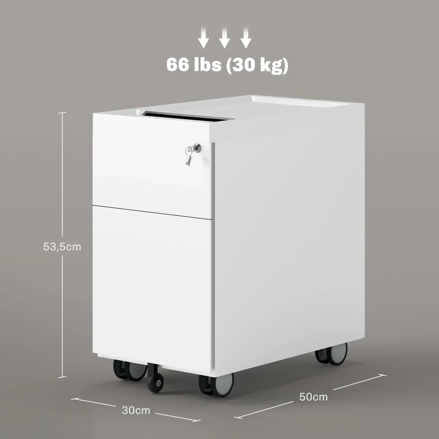 Ordnung muss sein! Dieser HOMSTEEL Rollcontainer bringt System in dein Büro. Mit 46x30x54cm und 3 Schubladen bietet er reichlich Stauraum. Die oberste Schublade ist abschließbar - inklusive 4 Schlüssel für deine wichtigen Dokumente. Jede Schublade trägt bis zu 15kg, die Platte oben sogar 80kg - perfekt für Drucker. Die vier 360°-Rollen (2 feststellbar) machen ihn super mobil. Die abgerundeten Ecken sehen nicht nur stylisch aus, sondern sind auch sicher. Aus robustem Stahl, daher hält er ewig. Kommt fast vollständig montiert - nur die Räder musst du noch anbringen. Die kugelgelagerten Schubladen gleiten butterweich. Endlich kein Chaos mehr auf dem Schreibtisch!