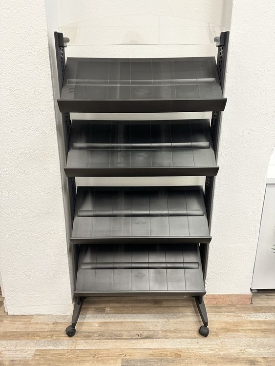 Für Einzelhändler, Flohmarkthändler oder Messebauer: Dieses Regal macht deine Produkte perfekt präsentiert und ist dabei super flexibel. Einfach zusammenbauen, Böden nach Bedarf einhängen und schon kann's losgehen! Die stabile Konstruktion hält auch schwereren Waren problemlos stand. Neuware in Top-Qualität!