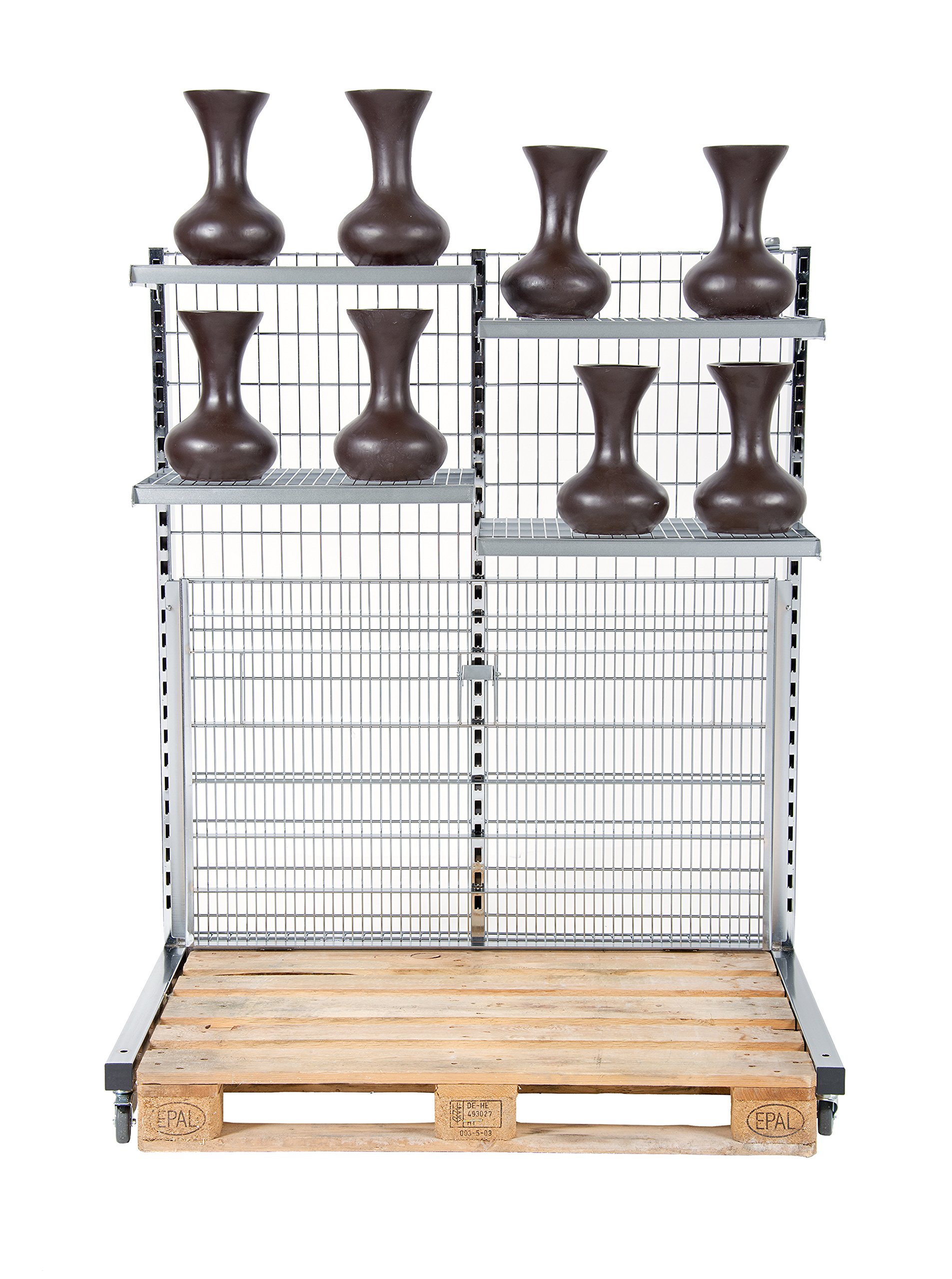 Professionelles Verkaufsregal auf Rollen - der Allrounder für deinen Verkaufsraum, Messestand oder Lager! Mit 131cm Breite und 158cm Höhe bietet dieses hochwertige Regal genug Platz für deine Waren. Besonders praktisch: Der unterste Boden klappt hoch, sodass eine Europalette perfekt darunter passt. Alle Rollen haben Feststellbremsen für sicheren Stand genau dort, wo du ihn brauchst.
